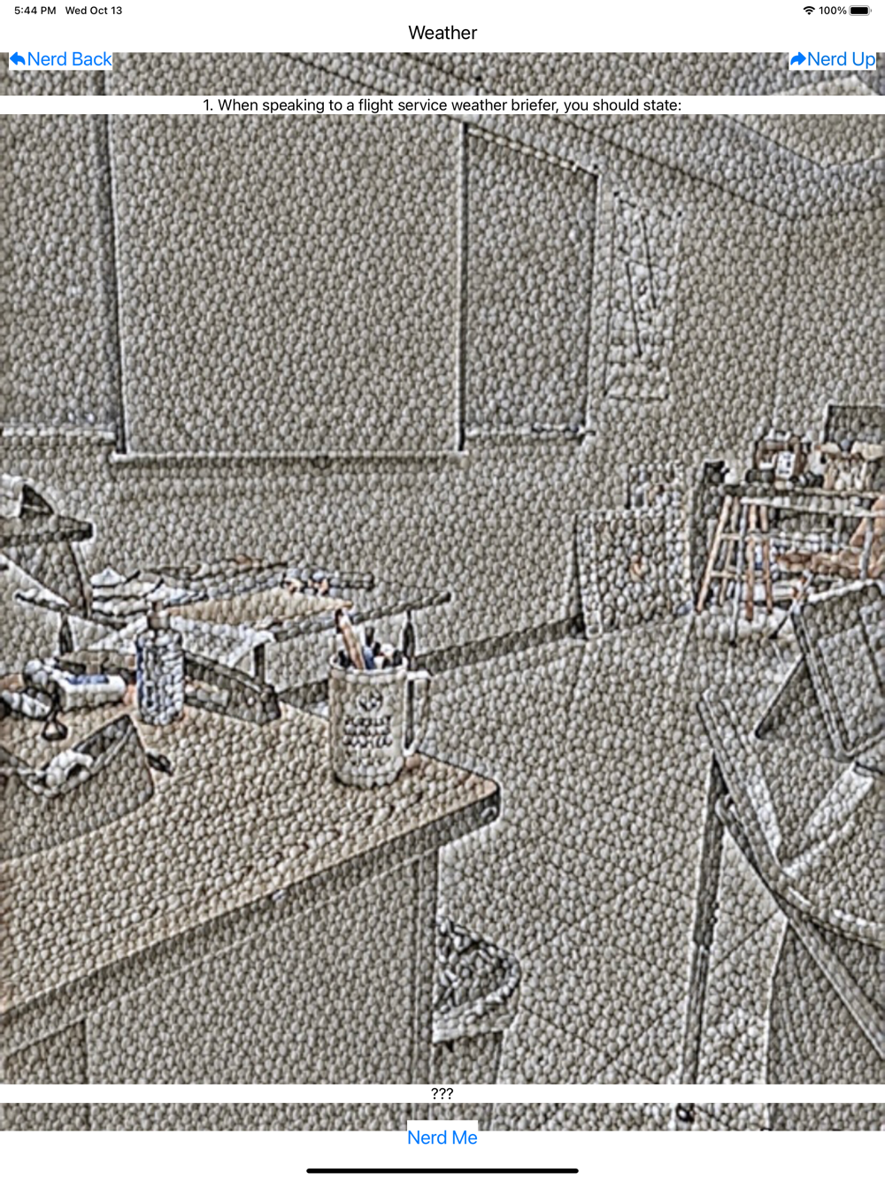 Pass your test using the Nerd Up study guide series. In this app we have a variety of questions that appear on the FAA Private Pilot Knowledge Test. Instead of guessing on multiple choice, get the correct answer with our 'Nerd Me' button which gives you the correct answer every time.