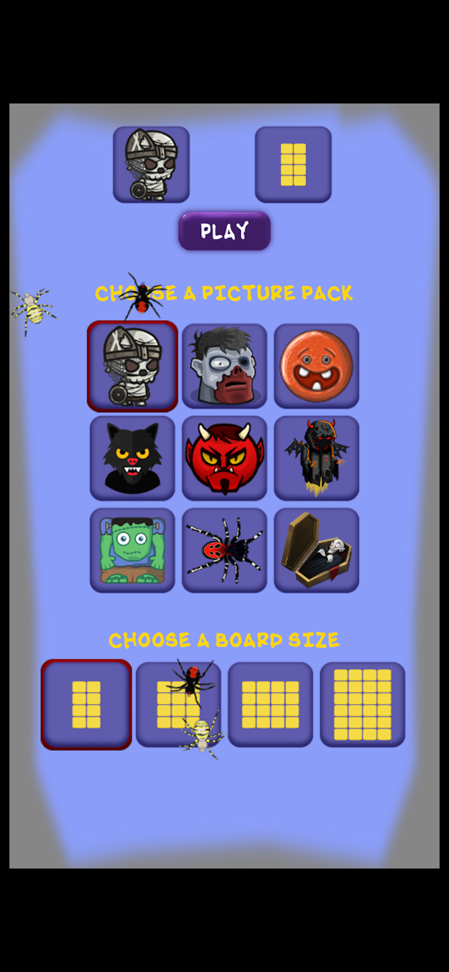 Fun Halloween based match game for kids - and those who feel like kids. Find the matching pictures of monsters, ghouls, ghosts and spiders, but there are only so many tries to match them all.