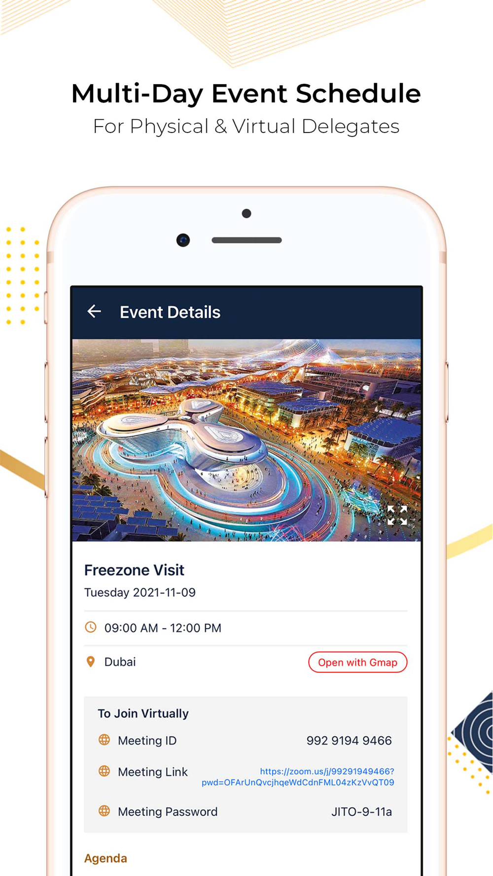 Get a full event schedule and venue, including meals and check-in check-out timings.