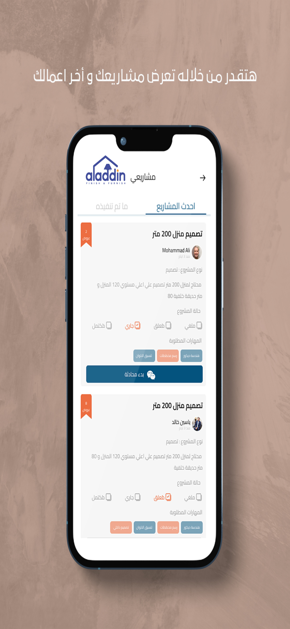 • Aladdin is a first-of-its-kind mobile app that offers multiple creative solutions and ideas about constructions, interior decorations, design, and construction services in one place.
