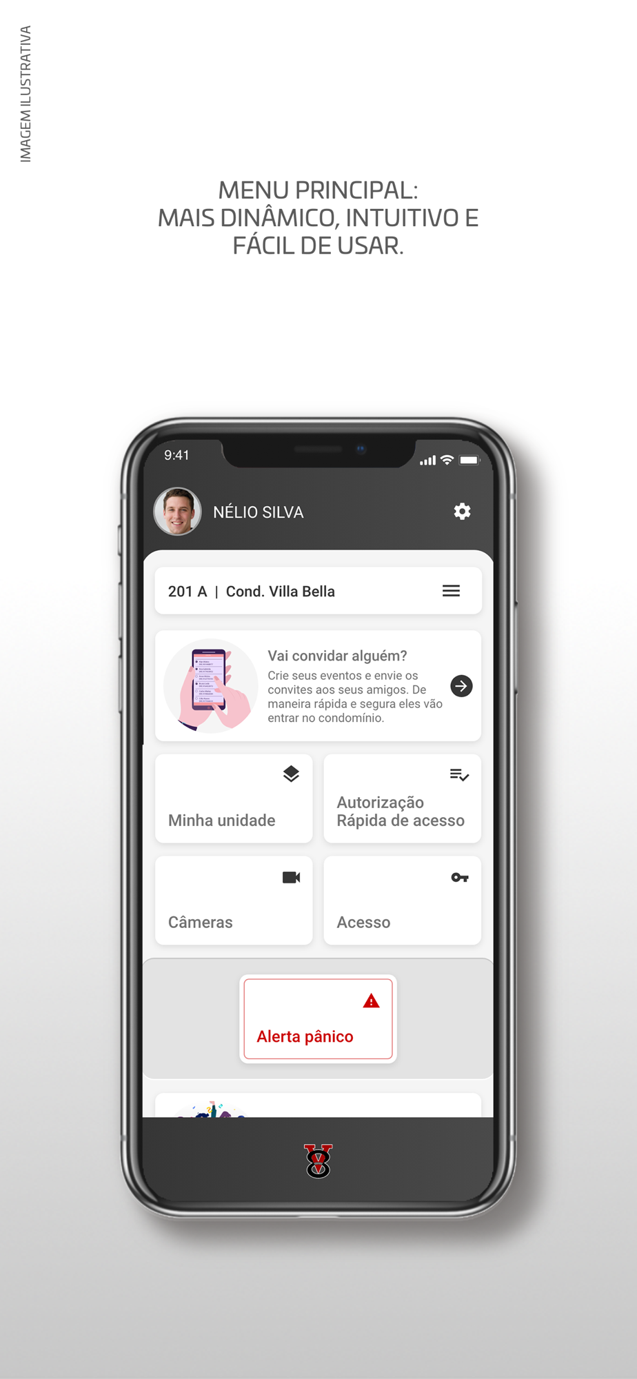 Possibilidade de o morador criar um evento e enviar convites para todos os seus convidados. Sempre que um dos seus convidado entrar ao condomínio, ele recebe uma notificação push no app.