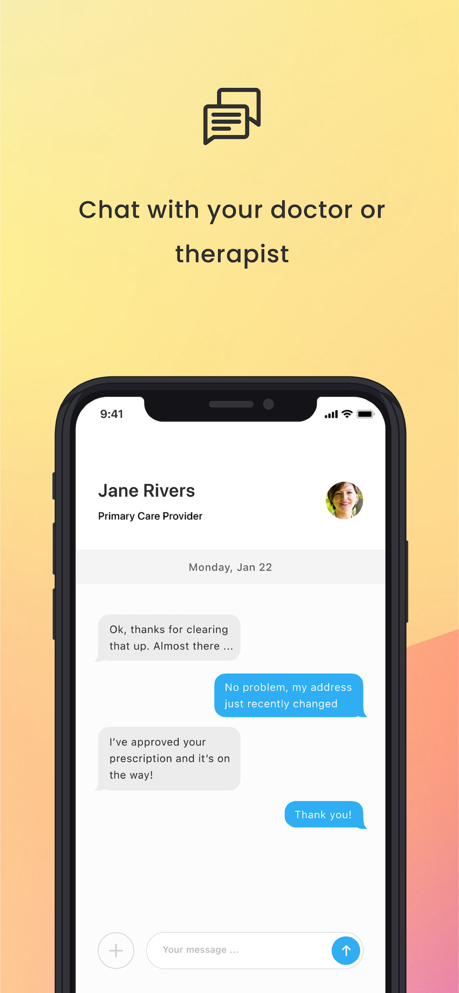 River provides access to quality primary and behavioral care right on your phone. You can connect directly with your dedicated healthcare provider when you are sick or need help with prescriptions. Therapists are also available to you.