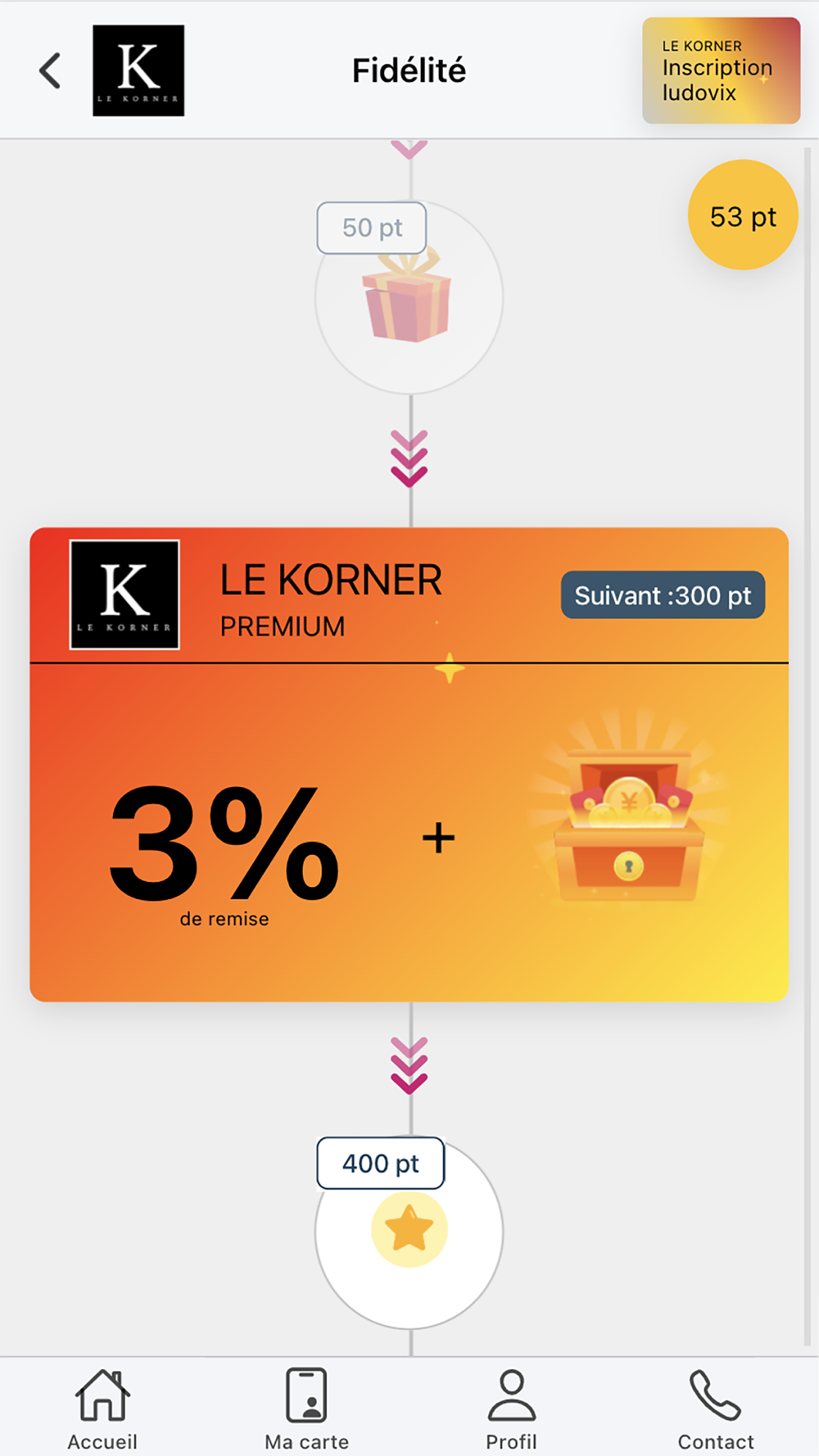 Le Korner a fait le choix d'une application mobile afin de pouvoir récompenser la fidélité de ses clients mais aussi les tenir informés des nouveautés et des offres exceptionnelles disponibles en boutique.