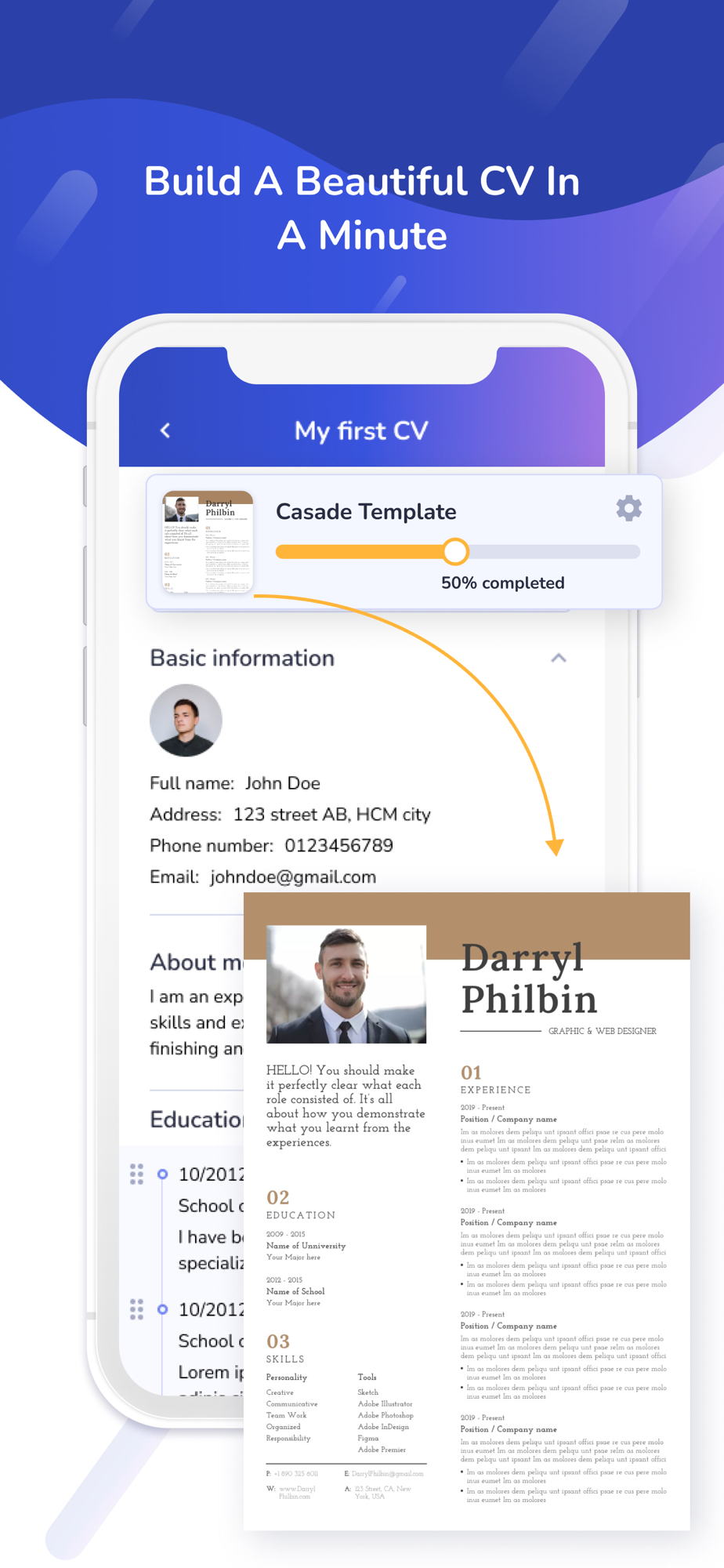 At the moment, we have standard CV templates for you with full features, or you can make it from scratch.