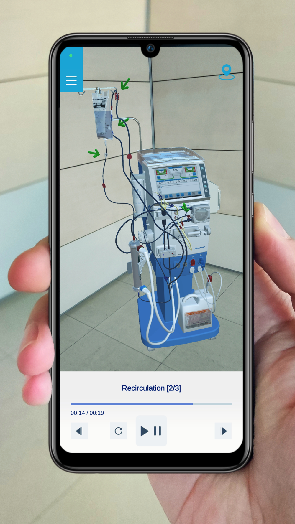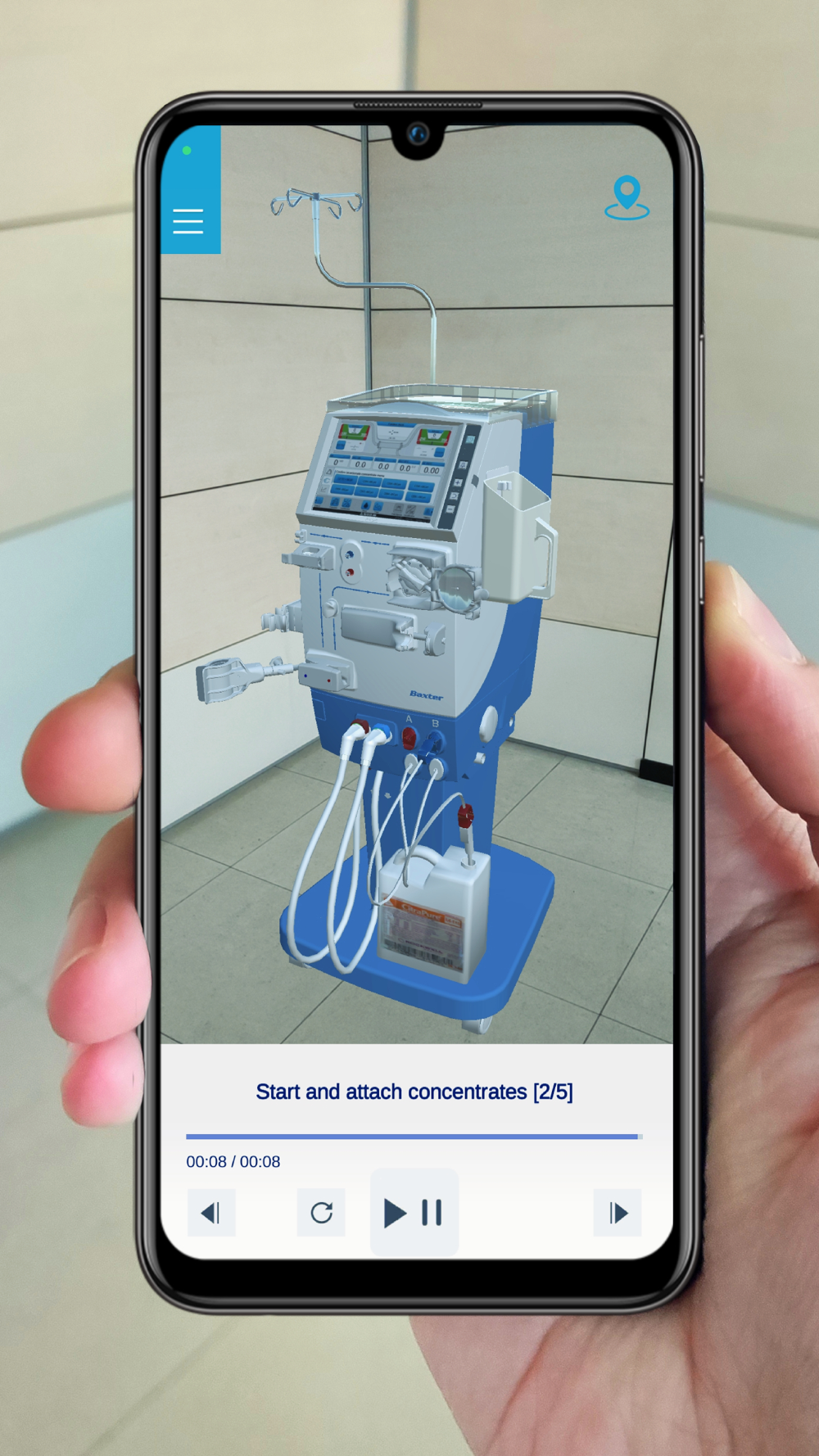 The AK 98 Augmented Reality App is a virtual companion, available, whenever and wherever you need it, to guide you through the operations of the AK 98 dialysis machine with a 3D learning experience designed to inspire confidence.