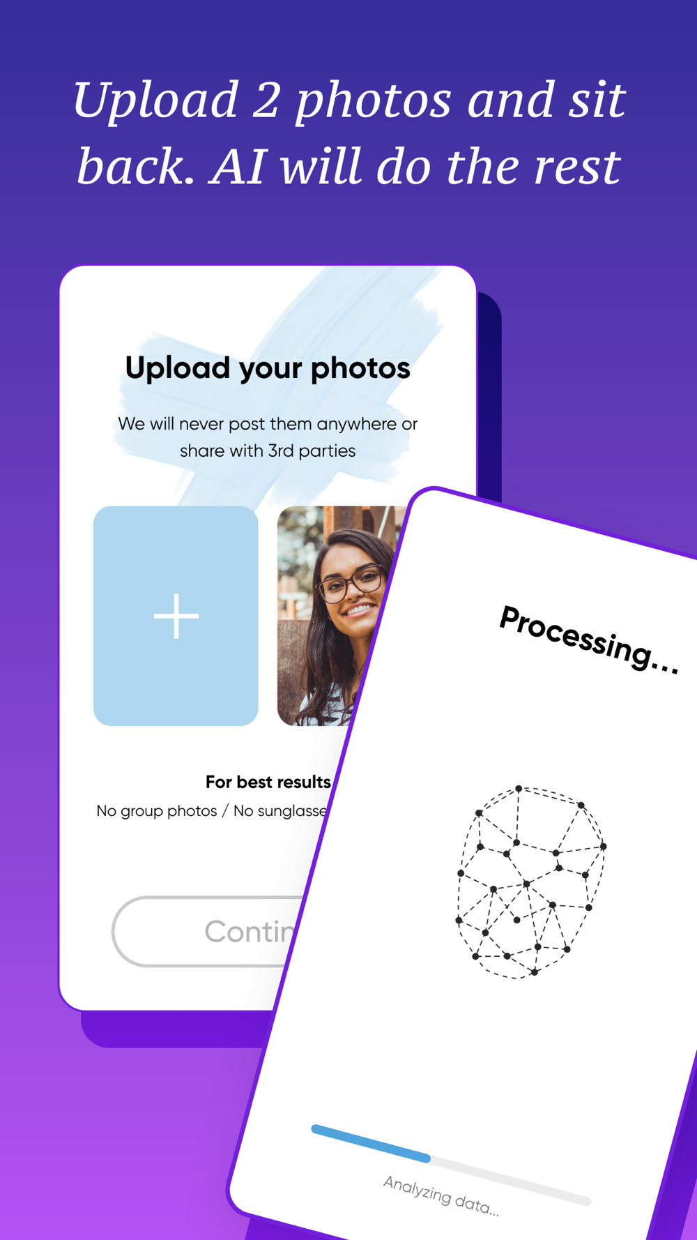 All you have to do is upload two photos of yourself. You’ll see the result in just a few seconds.
