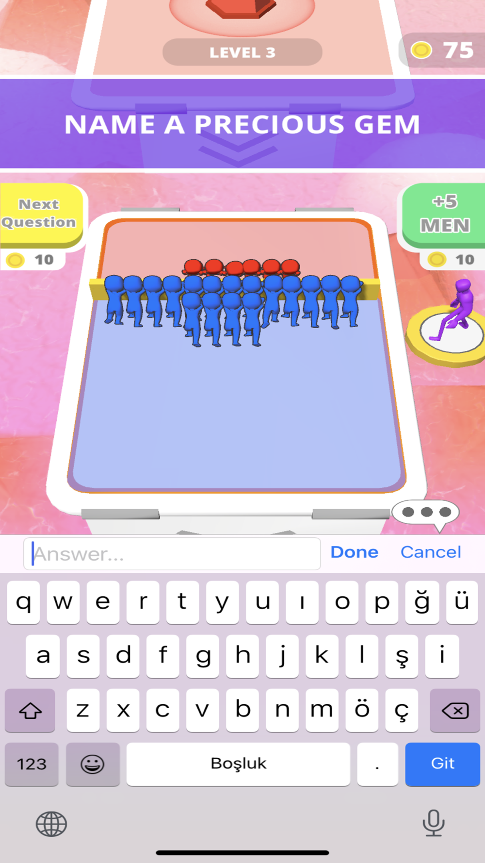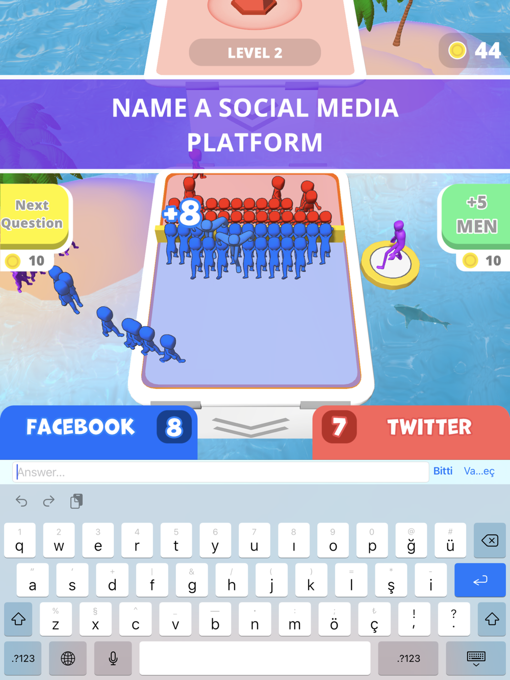 Guess the correct answers and type them quickly. Longer answers will give you more push power. Push strongly and push your opponent off the board!