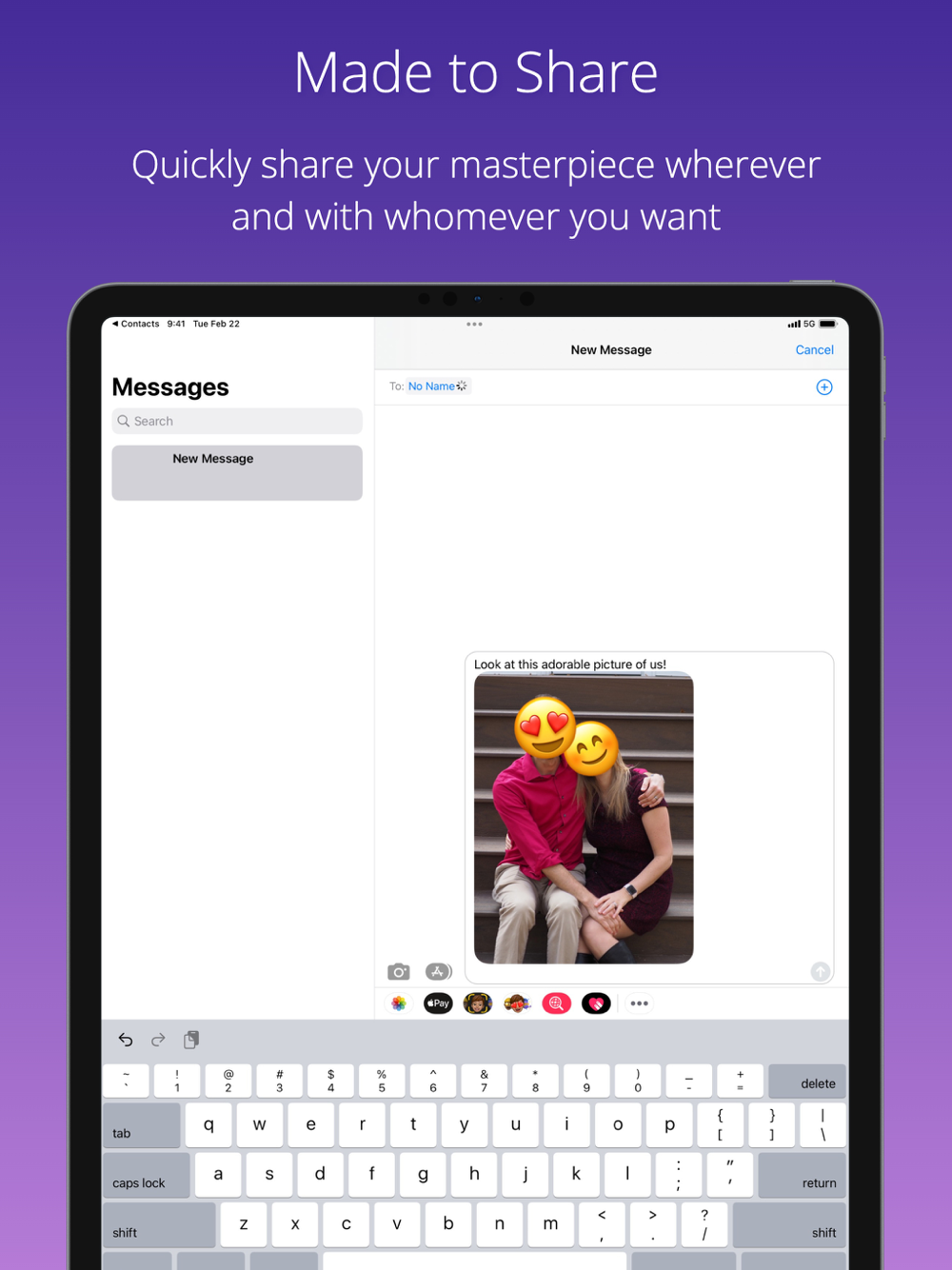 Once you've gotten your image just right, you can quickly and easily save it to your Camera Roll, or share it using other apps.