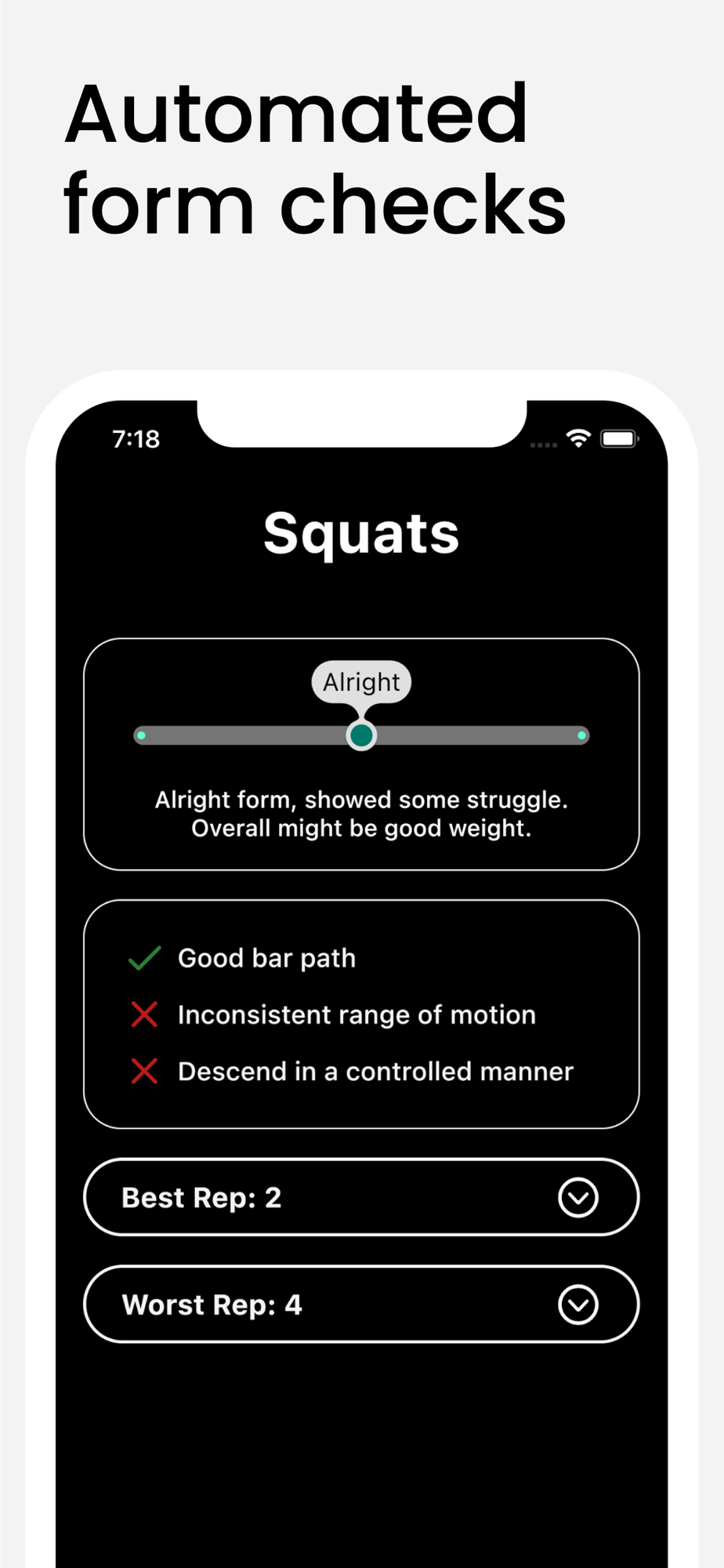• Instant feedback on your form