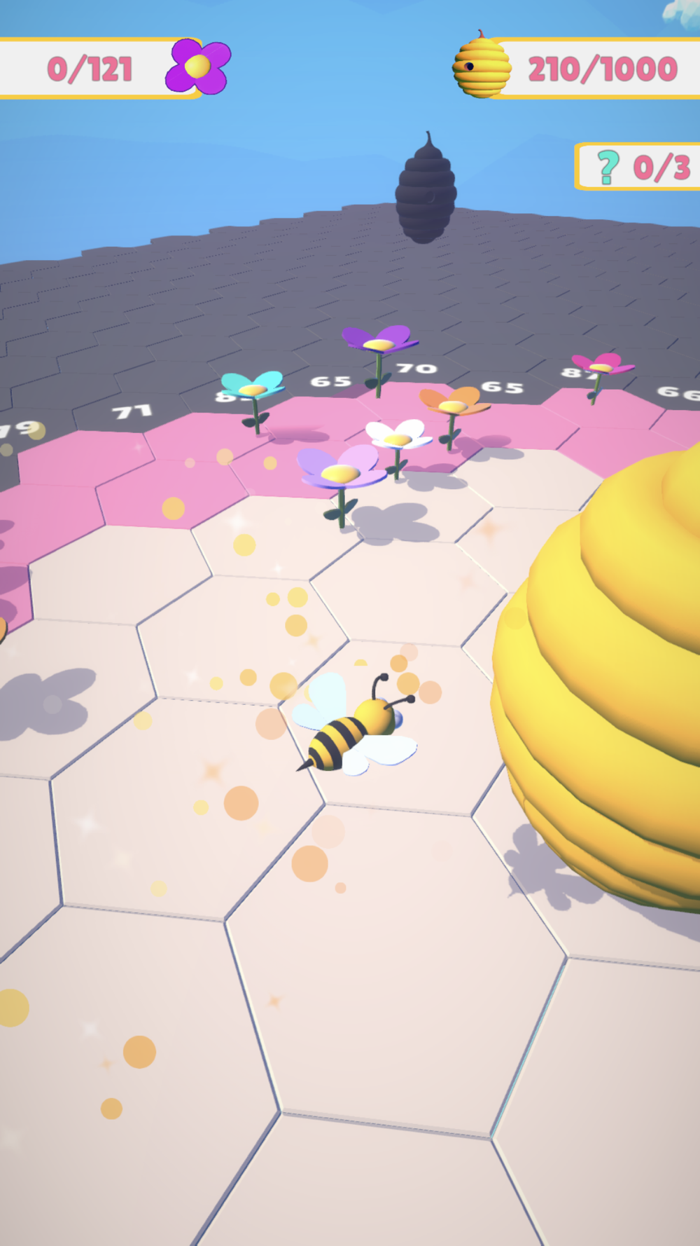 Collect pollens, convert them to honey and unlock the honeycomb!