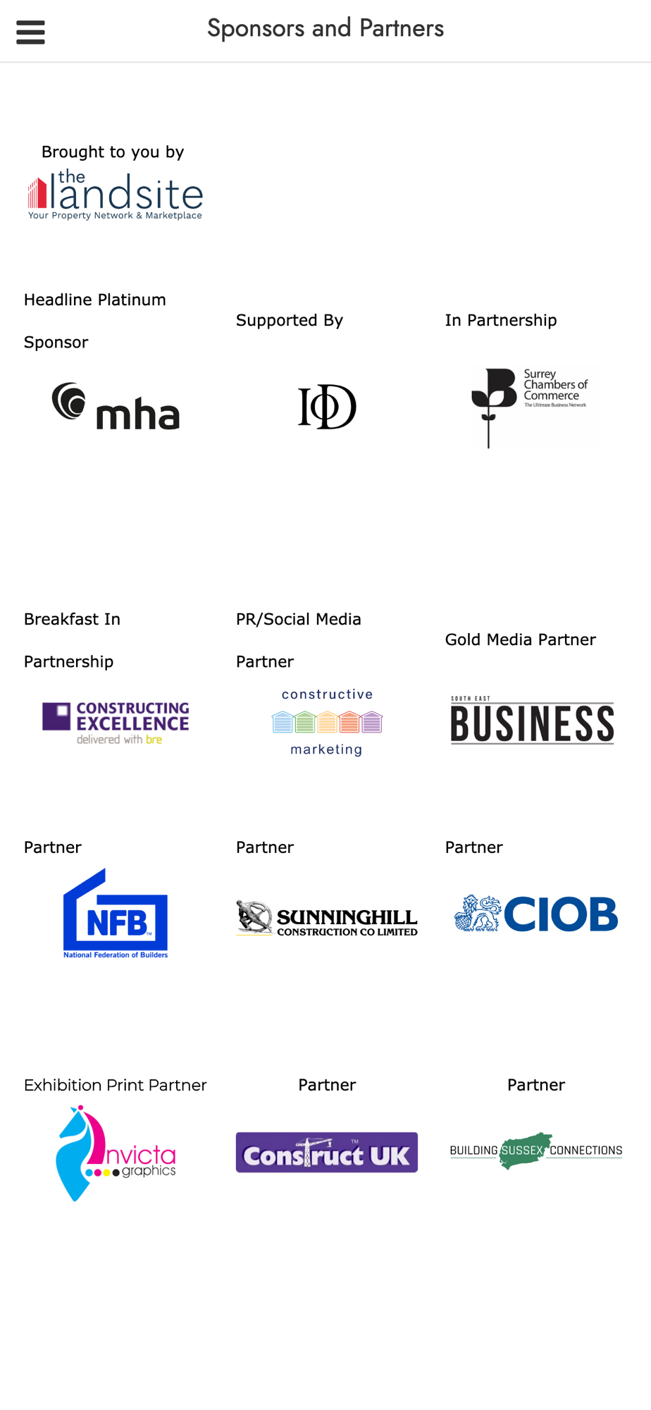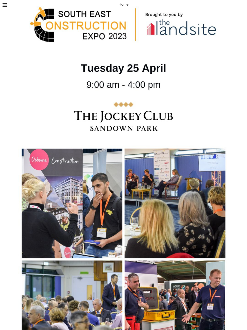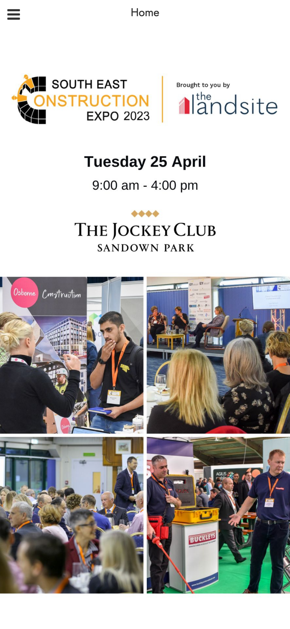 Best Business Events, Kent. Events Company. Download app for programme guide for South East Construction Expo on 25 April at Sandown Park Racecourse, Surrey.