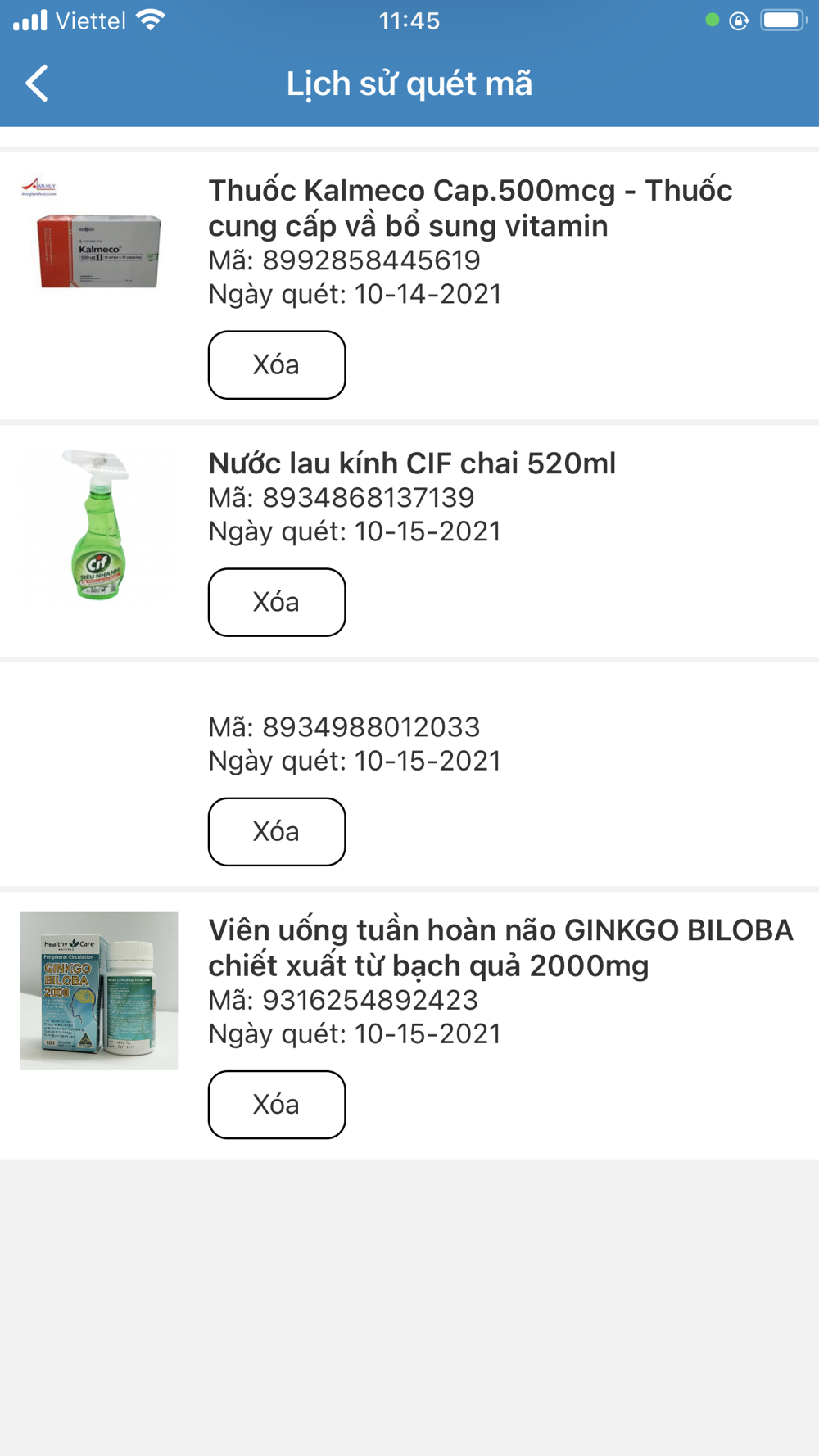mã mà bạn đã quét sau đó khi có kết nối mạng bạn có thể xem lại thông tin