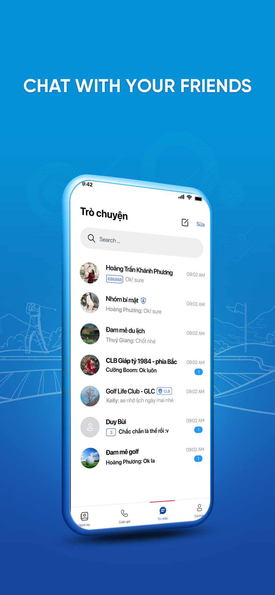 Kết nối với bạn bè trên thế giới ngay từ WGHN. Chỉ cần tìm kiếm họ theo tên hoặc tên người dùng để nhắn tin hay gọi điện.