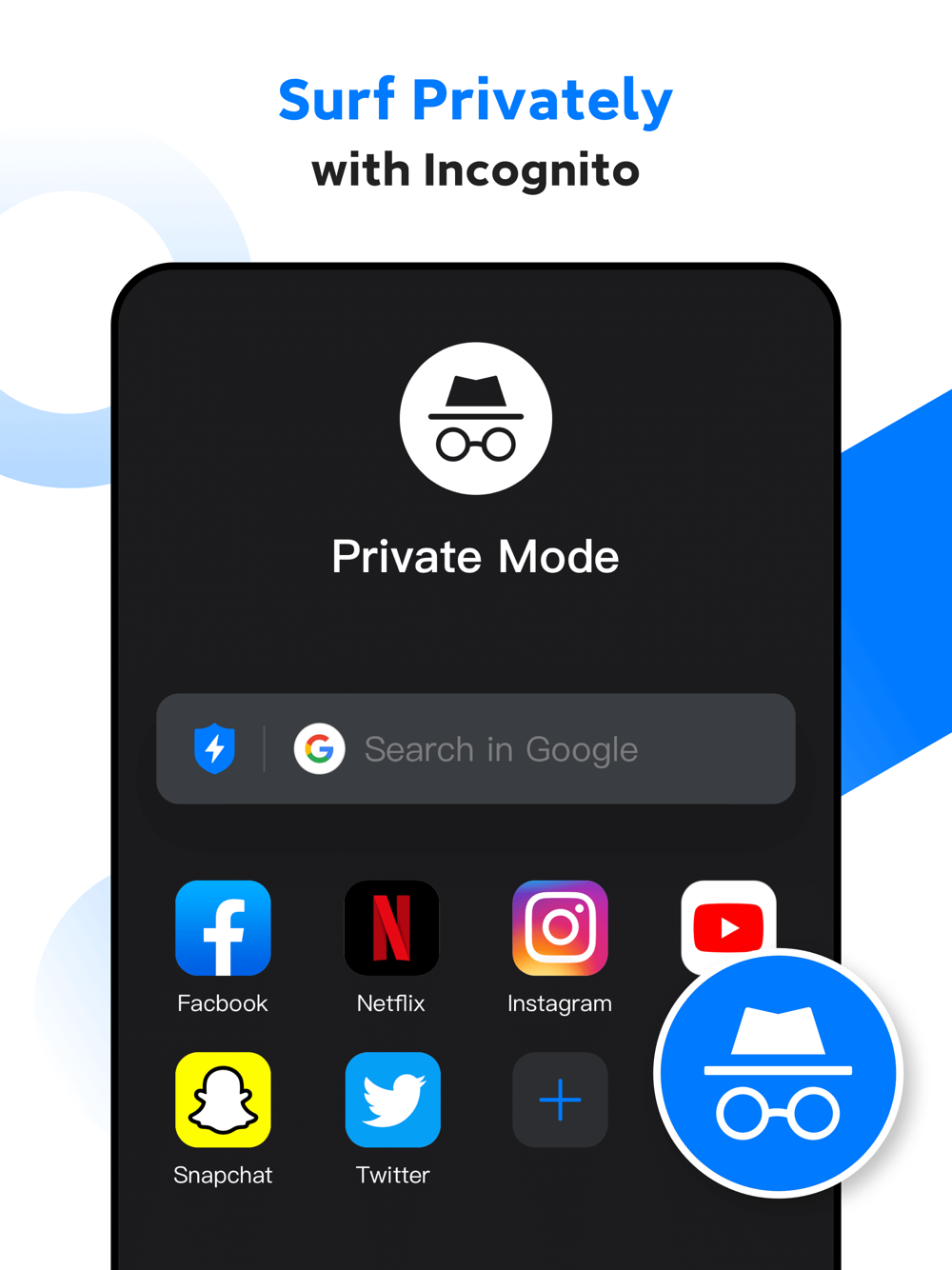 - Private Mode - The private mode offers you to use internet browser privately and does not store any of your data.