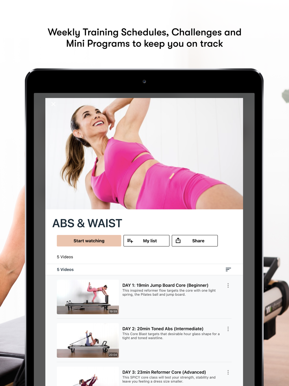 Whether you are a complete beginner or you want to step up your routine, get the complete studio experience at home with hundreds of beautifully choreographed transitions utilising Reformer, Mat Pilates, Barre & Tone.