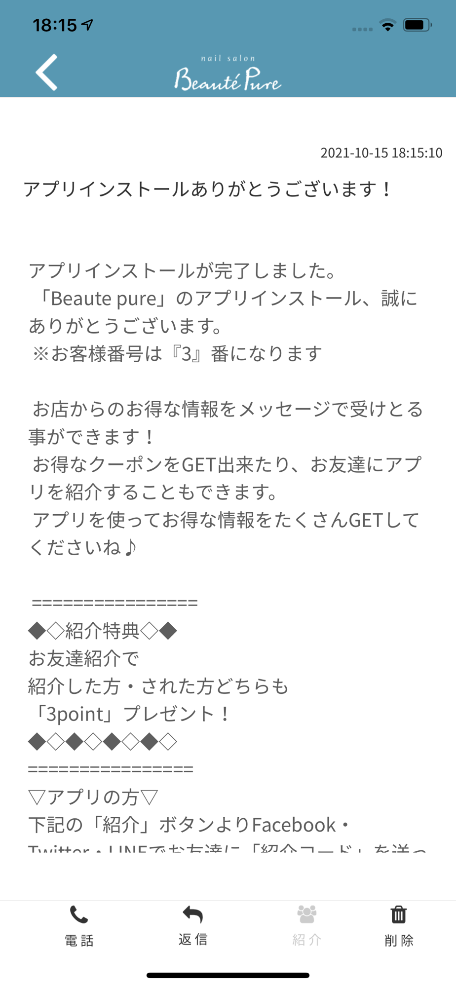 Beaute pureのアプリをSNSを通じてお友達に紹介する事ができます。