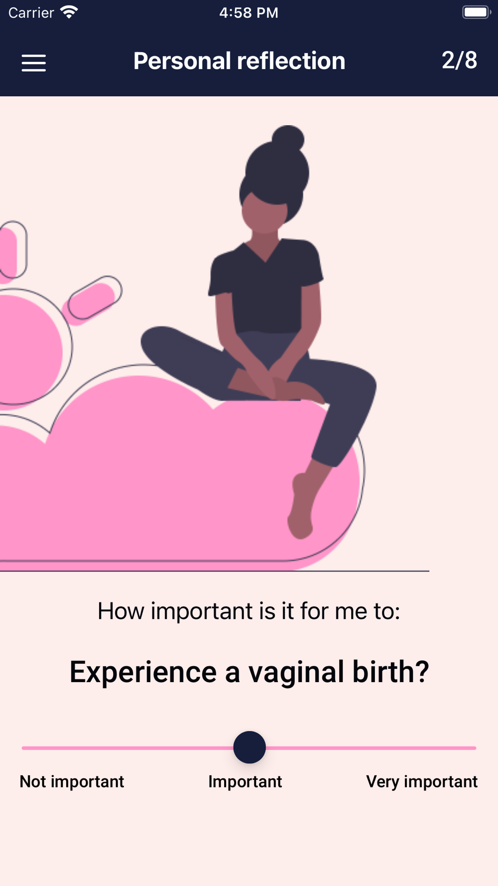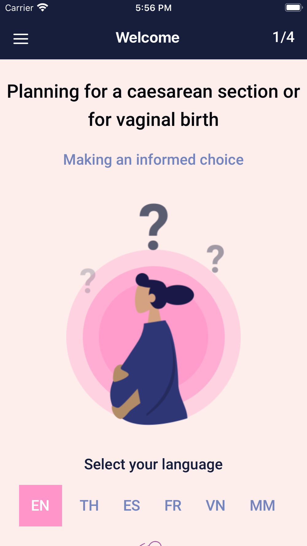 This App is for pregnant women taking part in the QUALI-DEC study, in Argentina, Burkina Faso, Thailand, and Viet Nam. It aims to help pregnant women make informed decisions about childbirth options, and to understand the risks and benefits of each mode of birth. Using this app, women can clarify and summarize their personal values and preferences and define what aspects of birth are important to them. It aims to support routine counseling and conversations with healthcare providers.