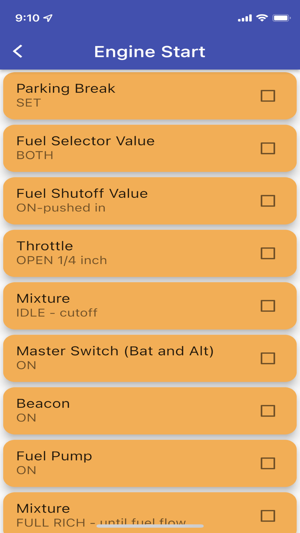 Easy to use C172 aircraft checklist for flight simulation and other flying scenarios. Checklist-C172 is not affiliated with the Cessna line of products or Textron.