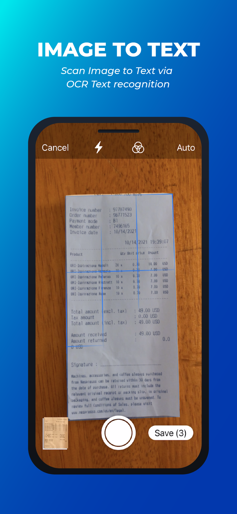 NOTE: The app has in-app purchases to allow users to use all options of Scanner App, as many documents as they want, remove the ads, and unlock the text recognition feature & other options.