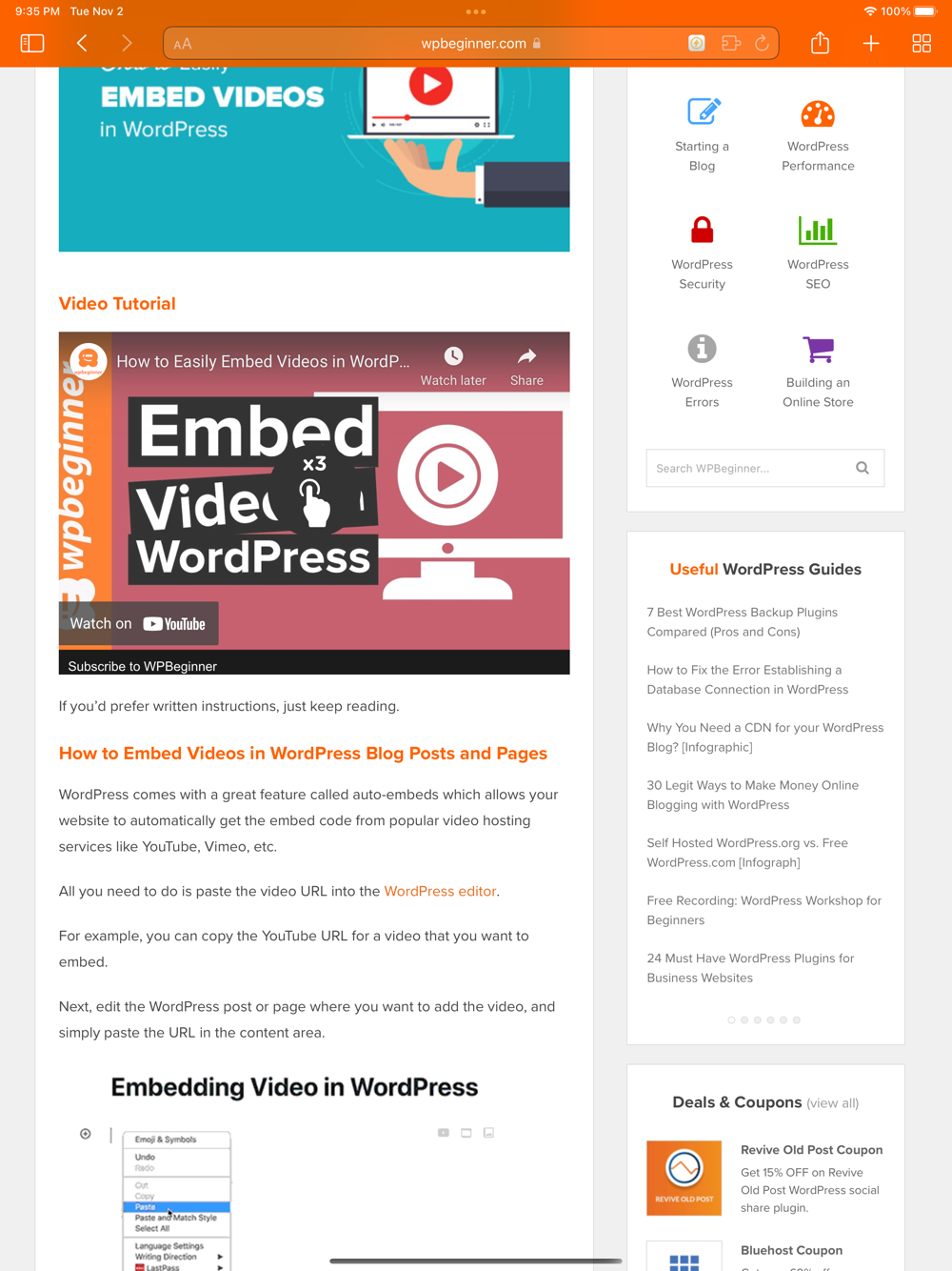 Simple triple tap on the video to enable the regular behavior of the embedded video. Videos automatically disable when they scroll out of view.