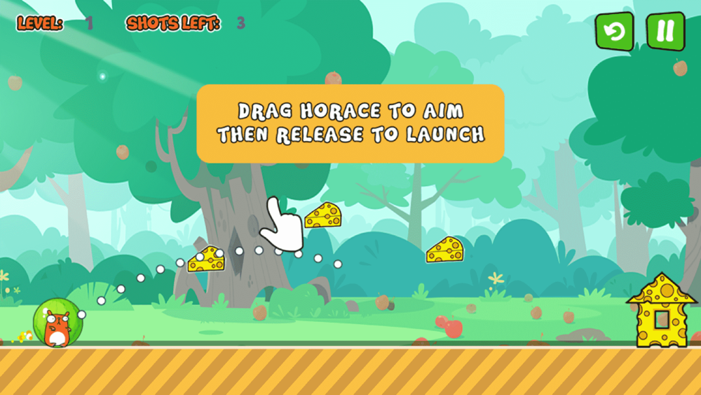 Control the angle of the launch, and successfully pass the level after eating a lot of cheese.