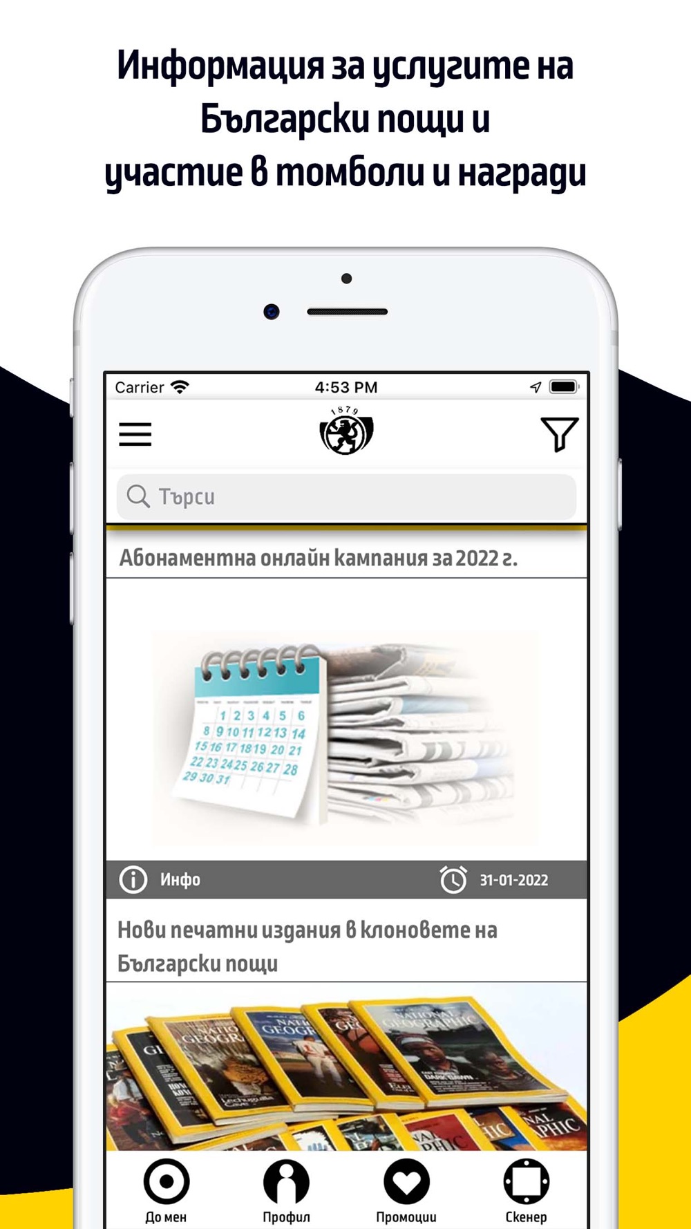 В приложението ще откриете интерактивна карта, с която бързо и лесно да откриете най-удобната пощенска станция във Вашия район. Ще получавате полезна и актуална информация. Подготвили сме разнообразно съдържание включващо интересни оферти, промоции с атрактивни награди създадени специално за Вас.