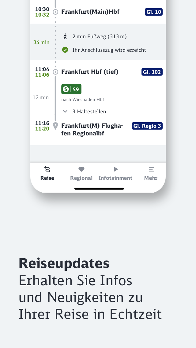 Dabei bleiben die Reiseinformationen für Sie immer am oberen Rand sichtbar - egal, welche Inhalte Sie im Zugportal aufrufen. Das gibt Sicherheit und Sie können nach Lust und Laune surfen, ohne dies unterbrechen zu müssen, um noch mal schnell Abfahrts-, Ankunftszeiten oder den nächsten Halt zu checken.