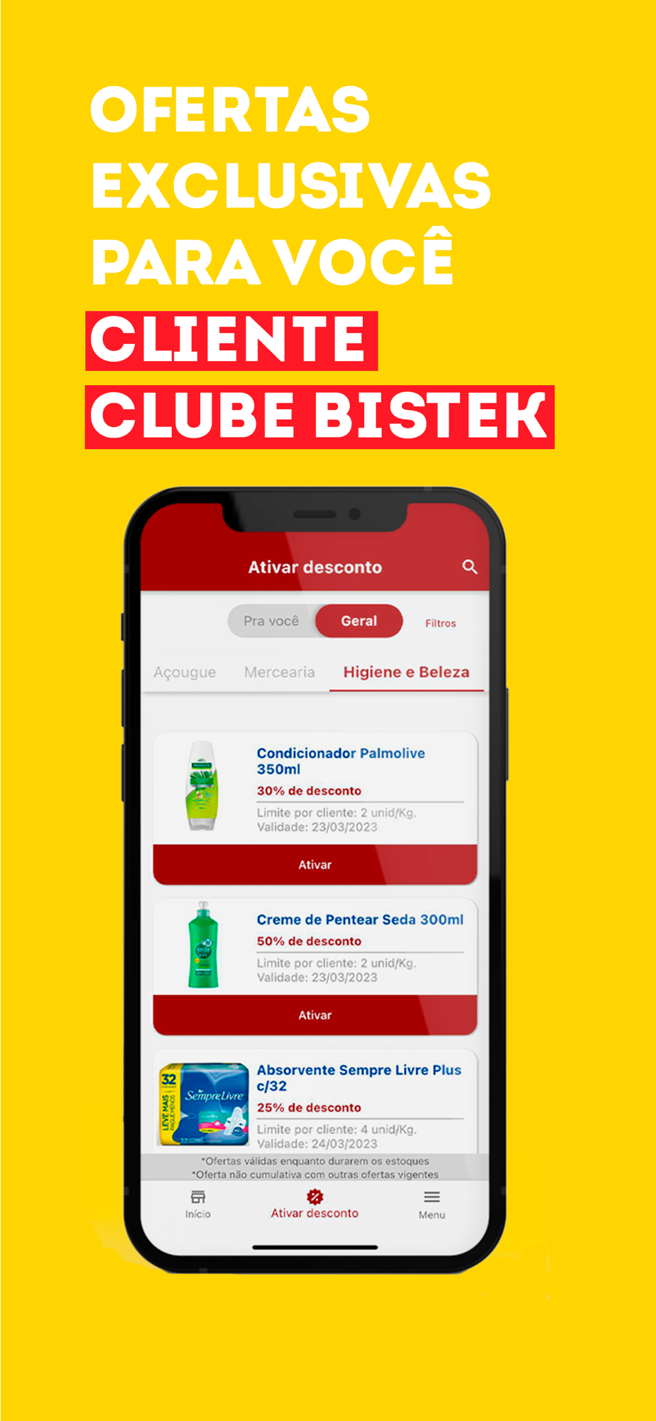 Centenas de ofertas toda semana para você aproveitar. Encontre a oferta que deseja, ative o desconto, se identifique com o CPF no caixa e aproveite! São descontos exclusivos para você!