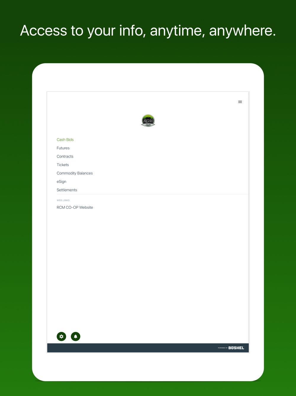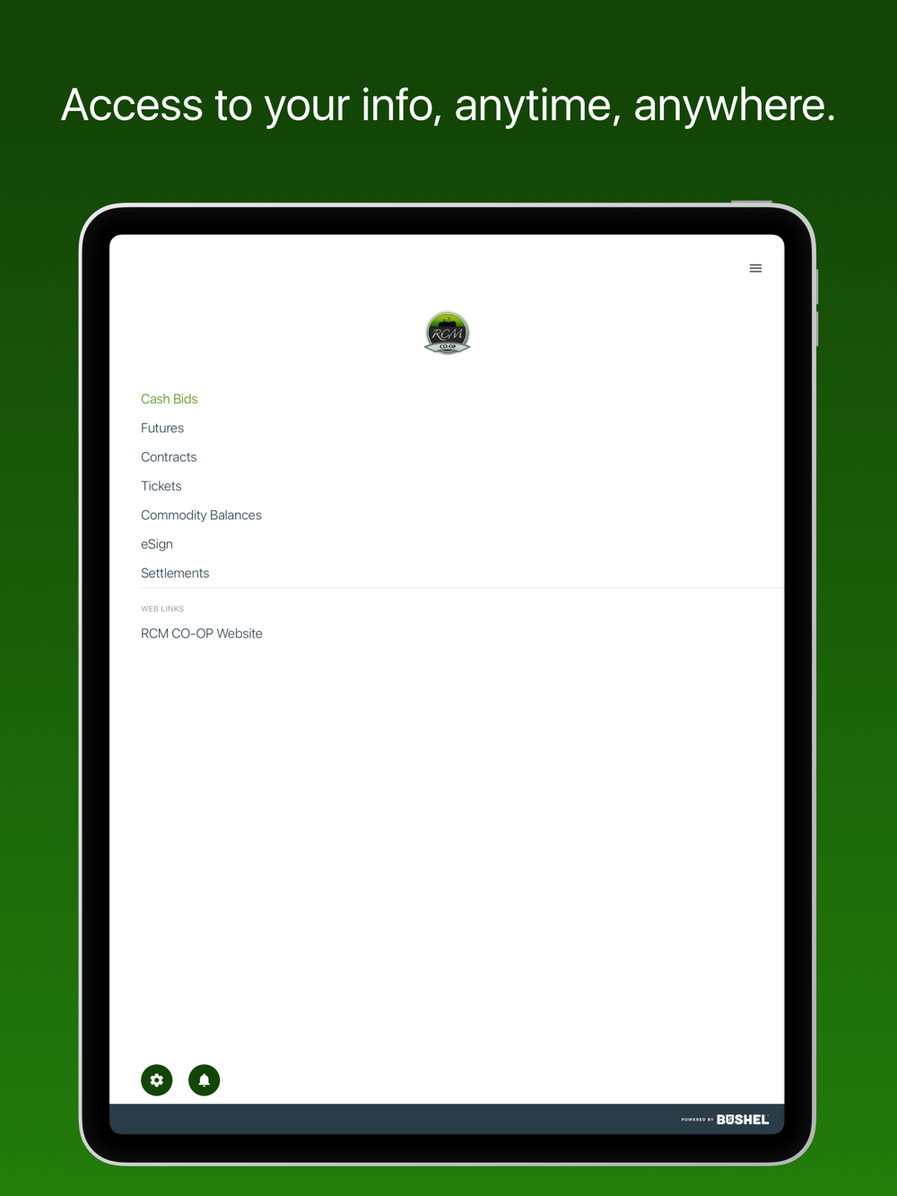The RCM CO-OP app is free, secure, and developed by the industry-leading Bushel platform.