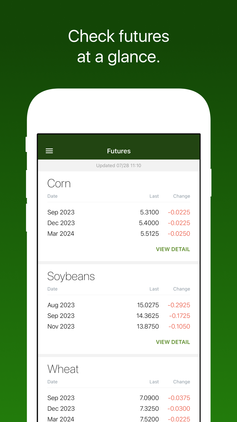 Futures: See Grains, Feed, Livestock, and Ethanol futures listed in order of your preference