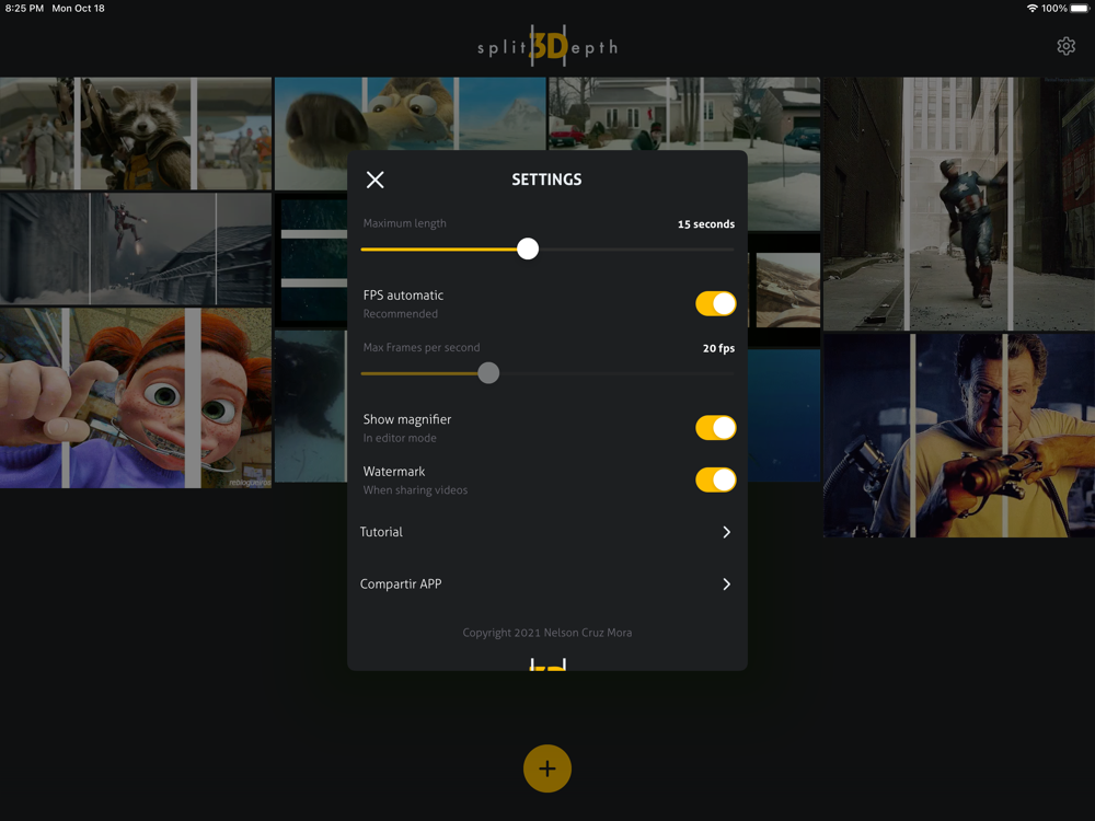 #split3Depth application will allow you to create videos using the Split Depth technique which consists in adding white stripes or edges giving the illusion of 3D, simulating a depth effect by highlighting people, animals or objects of interest in the foreground in a few steps: