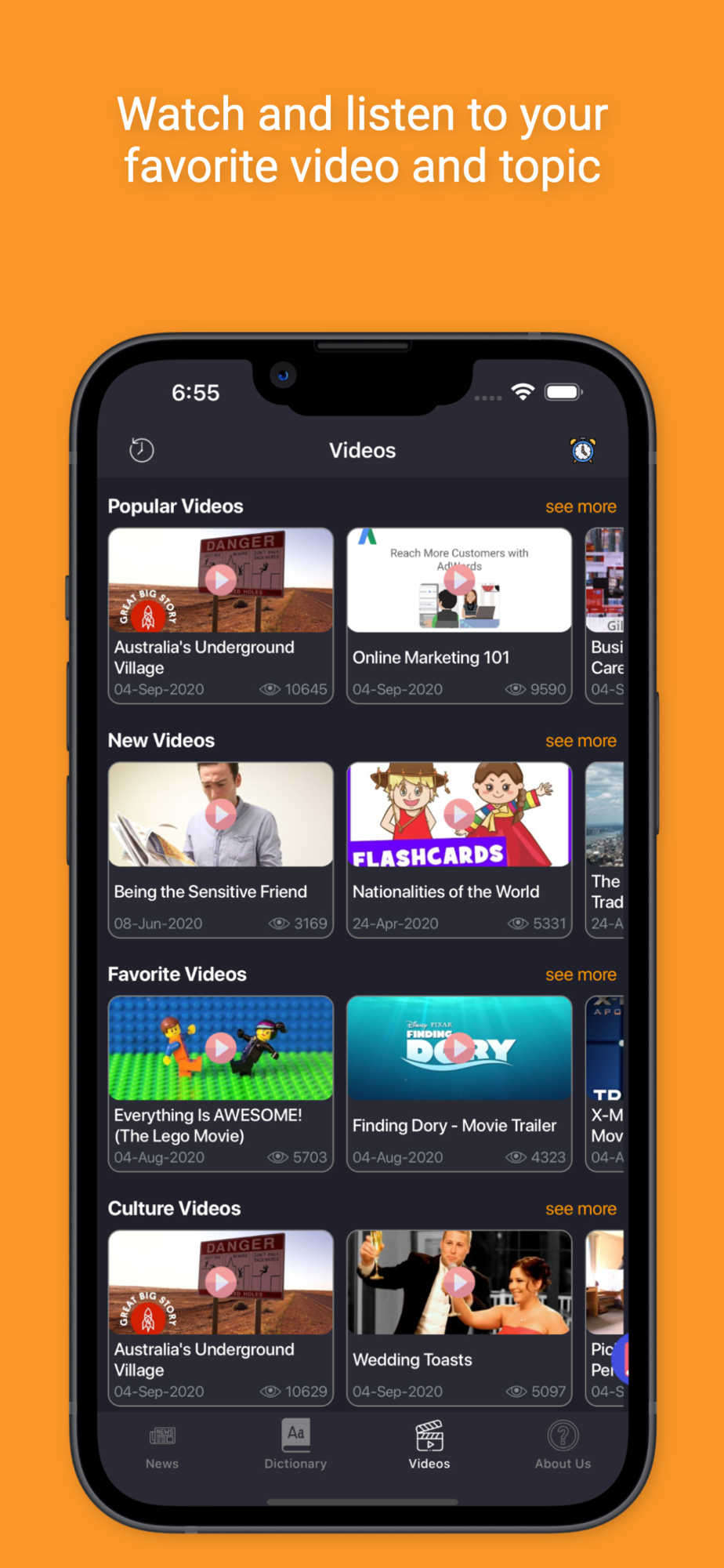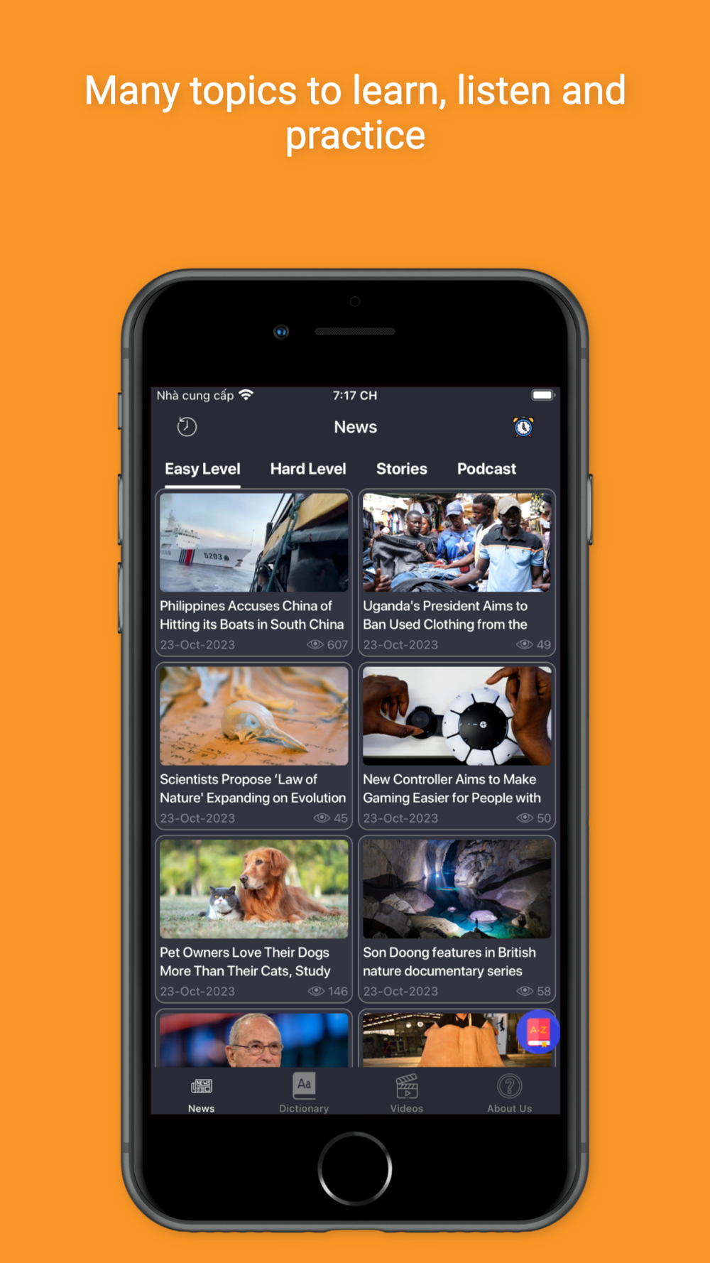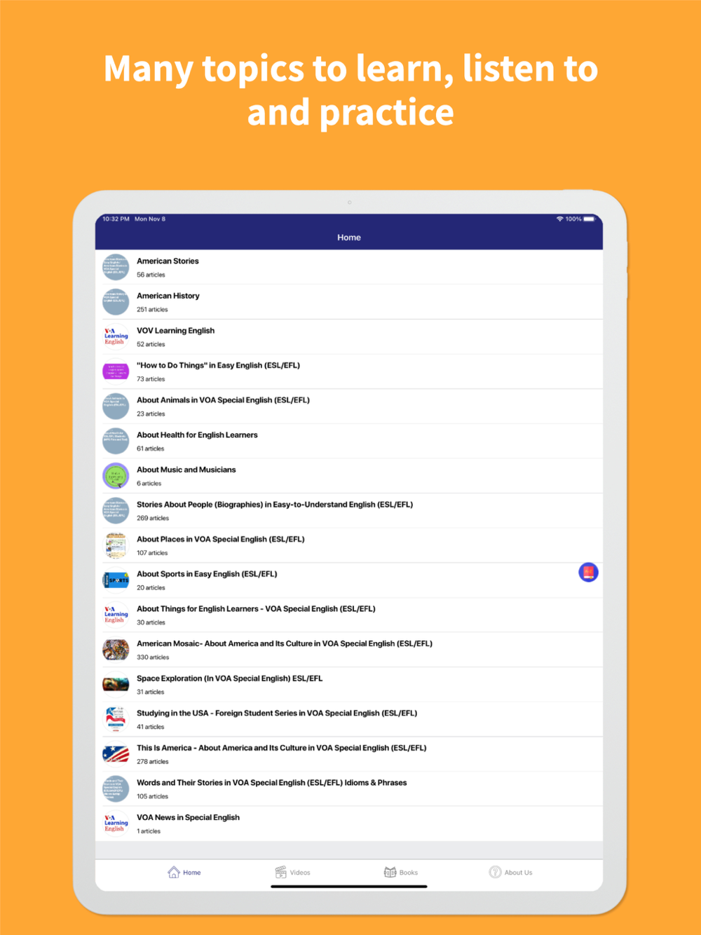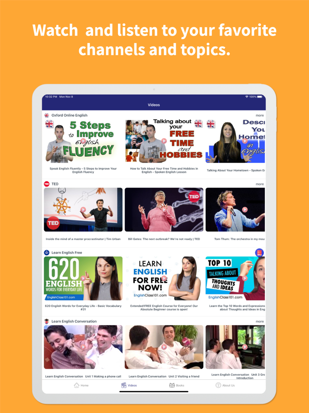 This app is designed to give you the best experience for practicing English. You can read, listen and watch lessons anywhere on your mobile devices. The content in the app is updated every day.
