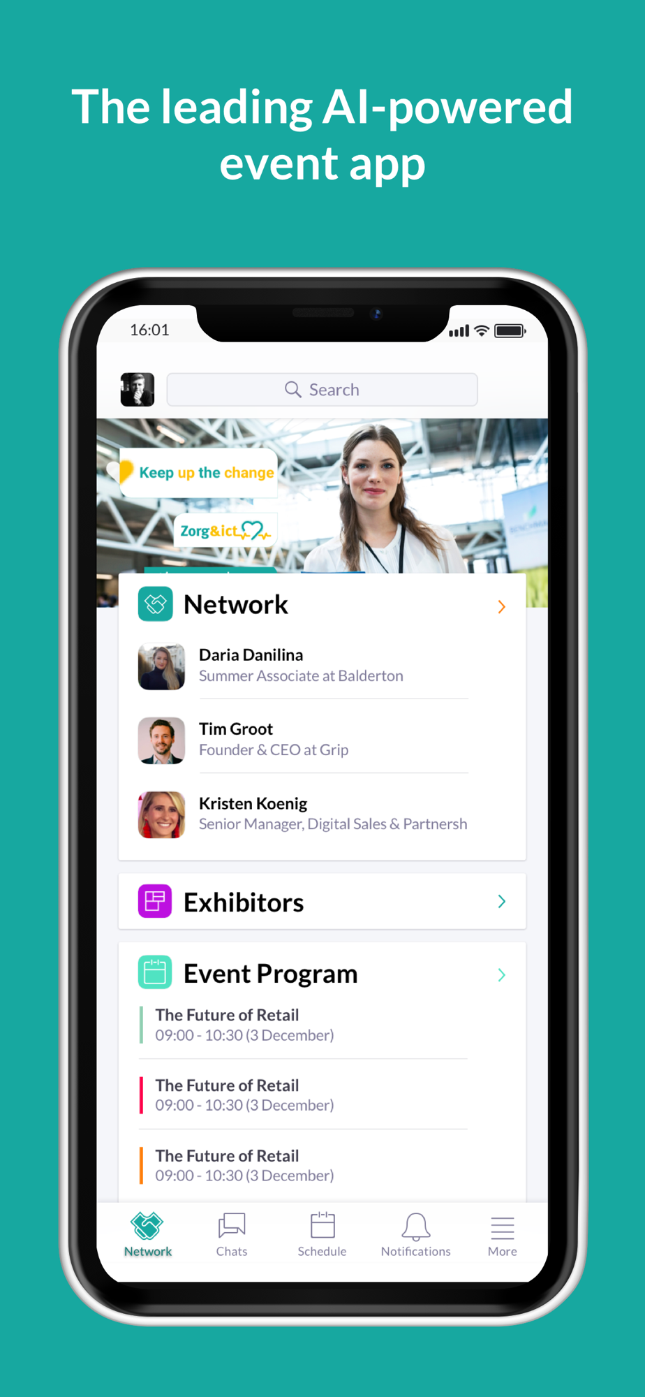 Download de Zorg & ICT app om het programma te bekijken, afspraken te plannen met exposanten en andere bezoekers. Bekijk de deelnemerslijst en navigeer over de beursvloer.