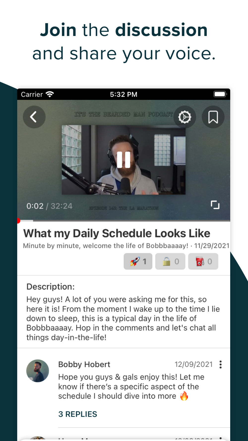In the app you will find exclusive podcasts, monthly challenges, a support system community, direct communication with Bobby & more.