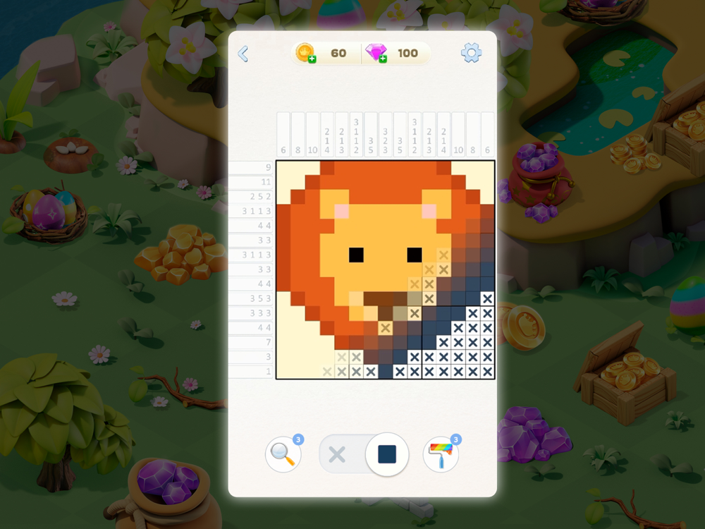 Elves will show up after 3 eggs were collected and matched~wide-open game board brings a huge potential of design and creativity to build a whole new magical wrold. Complete nonogram puzzle and keep Merging to find and discover the magic!