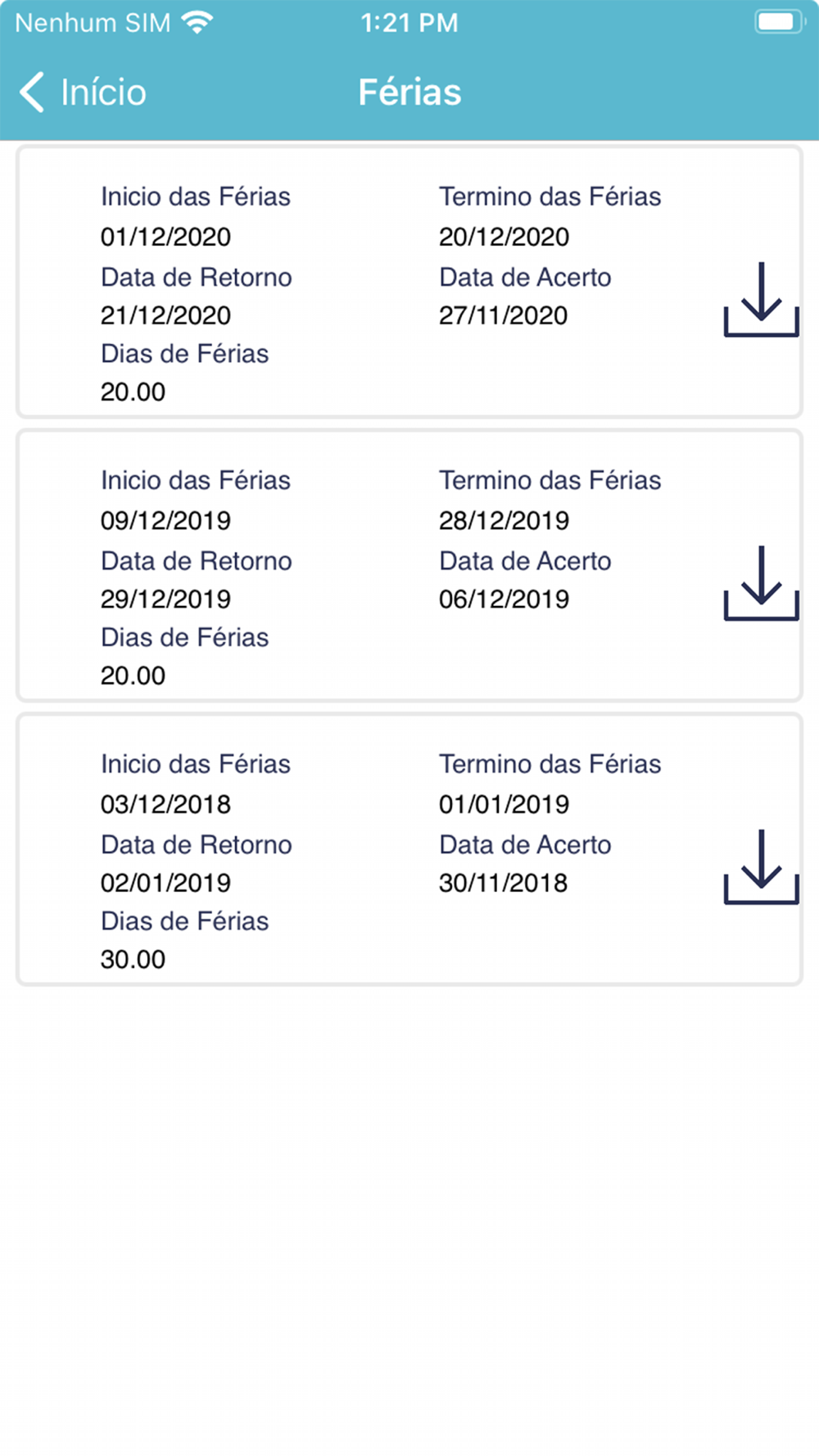 Consulta dos recibos de Férias, bem como suas datas de gozo, retorno e data de pagamento;