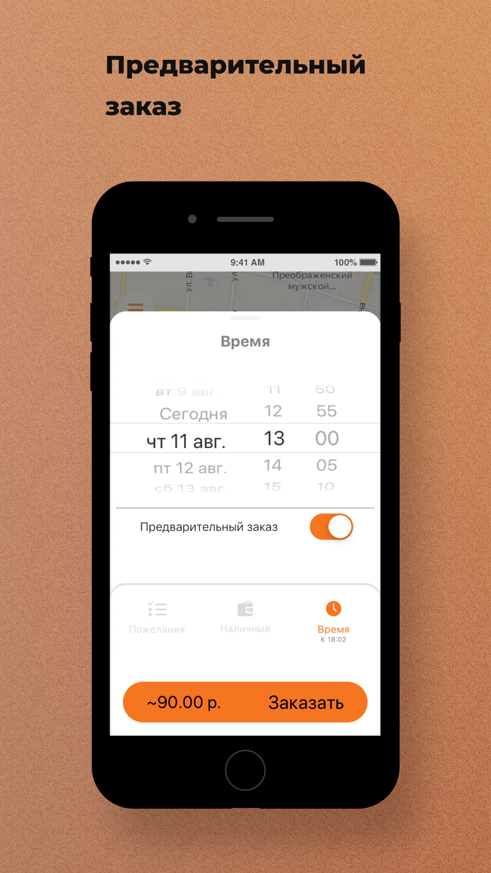 Приложение само автоматически определит адрес подачи (если включен GPS).