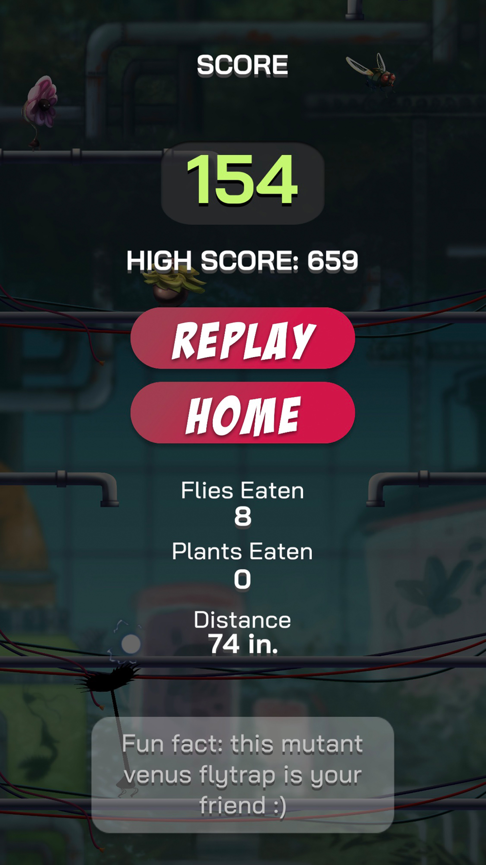 Flytrapped is a 2D platformer following a mutated flytrap's struggle to escape an unforgiving laboratory filled with mutant plants, dangerous obstacles, and (of course) flies. Eat, bite, and, climb to make it out alive. Do you have what it takes to help rescue the fly-boy from impending doom?