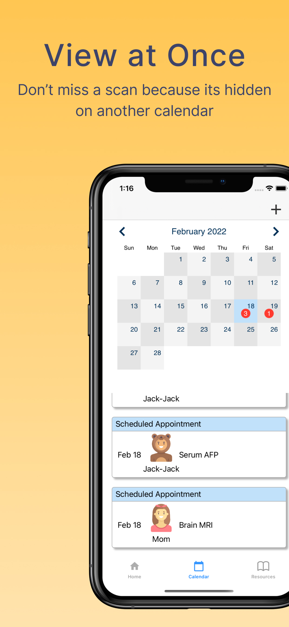 Our focus is to help the caretaker of the family with management of these predispositions. To create this app we interviewed families with 1 to 4 family members with the predisposition. We learned that making sure everybody sticks to the protocol can be challenging: different kids' protocols, many appointments, keeping track of results, and a lot of stress. HomeTown's intention is to centralize that on an app to make your life a bit easier.