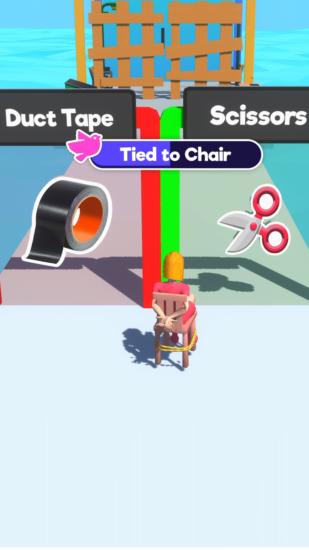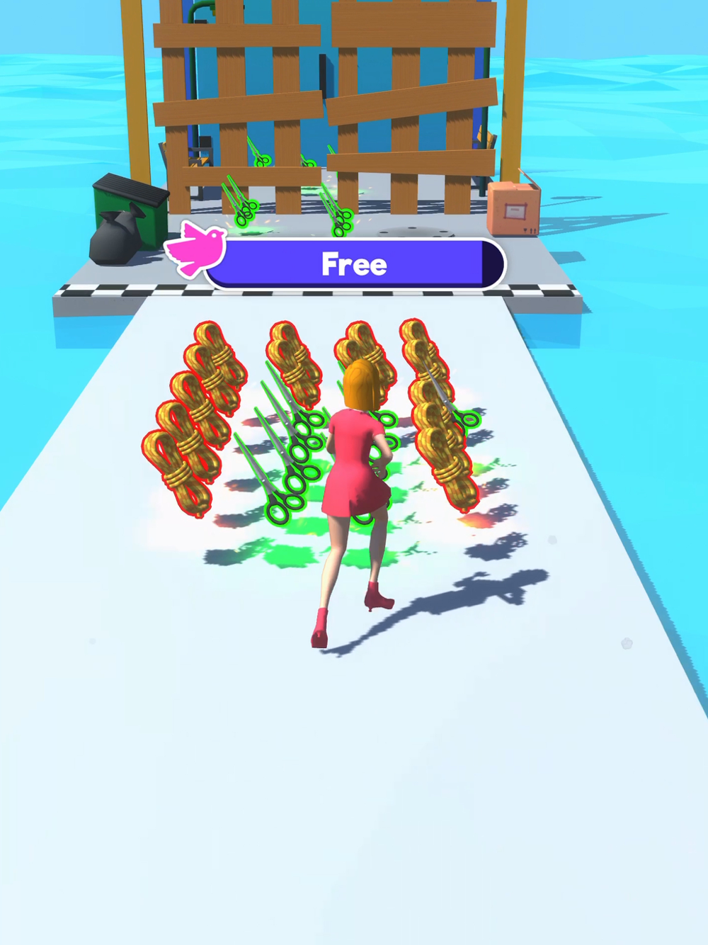 Reach to the end of the road and try to collect as many scissors as possible in order to free yourself!