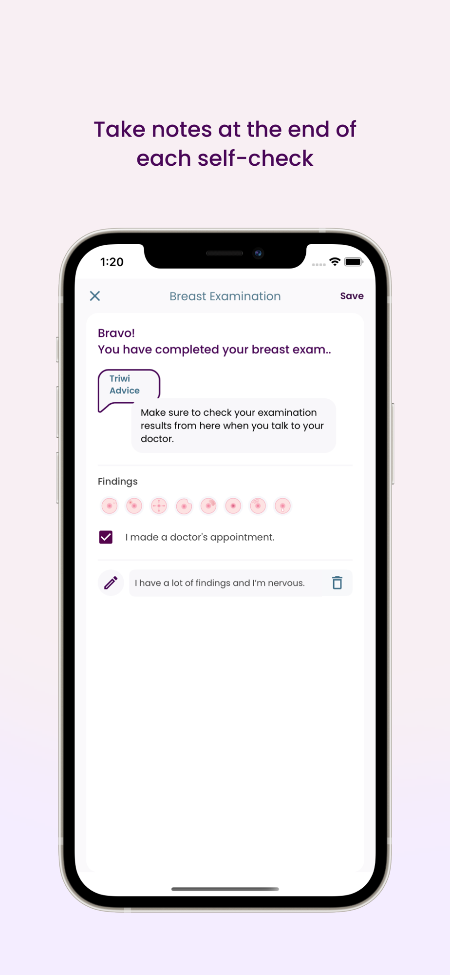 Take the first step! Install Triwi Assistant to make self-breast checks a habit. Not only take the first step to your breast wellness, but also get to know your hormones by your breasts, educate yourself about lumps, fibrocytes, and many other breast-related diseases.