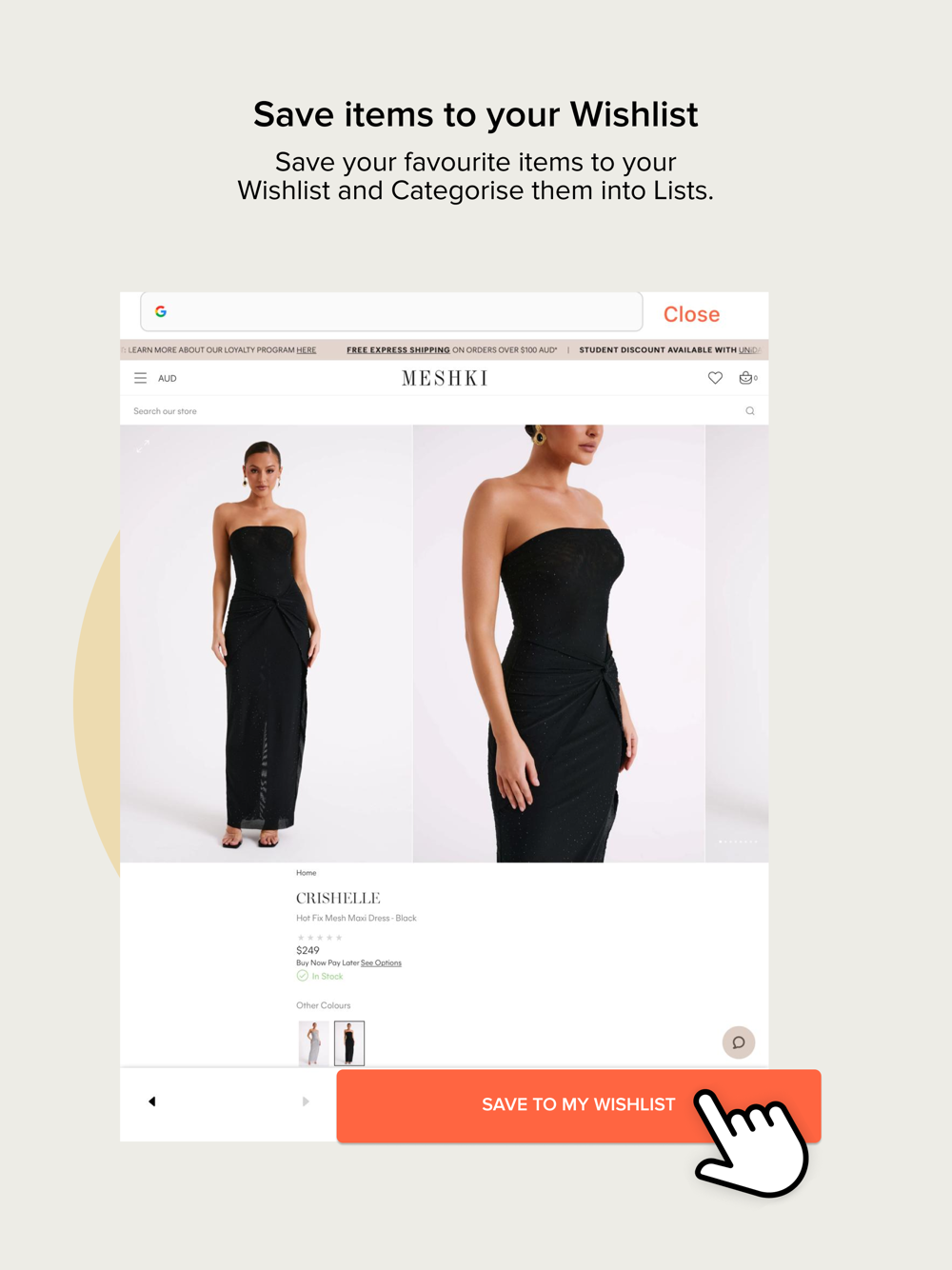 Need your friends’ opinions on that perfect gift or the latest fashion trend you’ve been following? Screenshots and links have left the group chat. Centralise your shopping chats by inviting your friends to view your lists and vote on what they like. Shopping decisions have never been this easy!