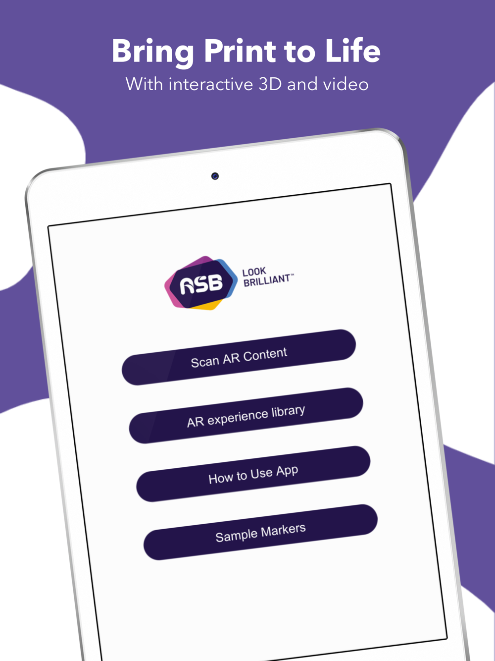 Download the ASB AR app and scan the augmented reality enabled markers to experience interactive video or 3D content.