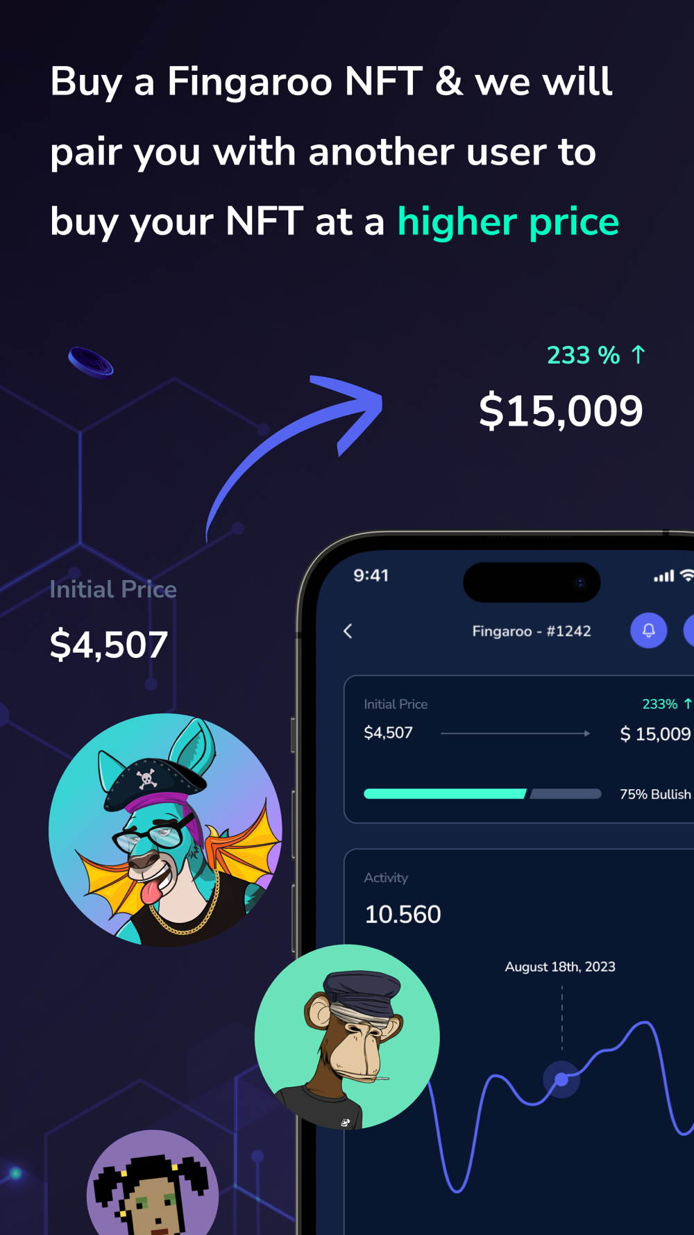 Utilizing our GPT-powered AI engine, Fingaroo uncovers market trends and delivers comprehensive insights by consolidating key differentiators. Stay ahead with alerts and high-profit, high-winning rate suggestions for promising NFTs, backed by solid communities and potential value growth, derived from real-time news across different regions.