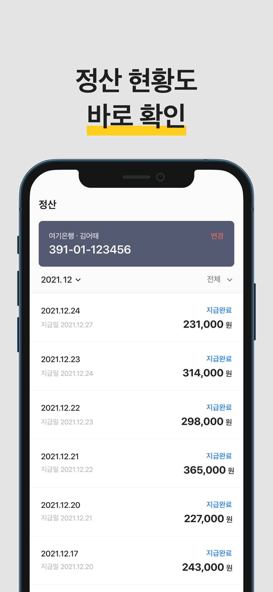 - 매일 정산되는 현황을 바로바로 확인 해보세요.