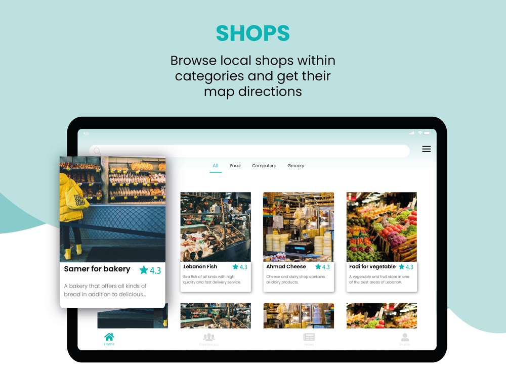 This application is a social application that promotes local shops and professionals in the city of Abra, Lebanon.