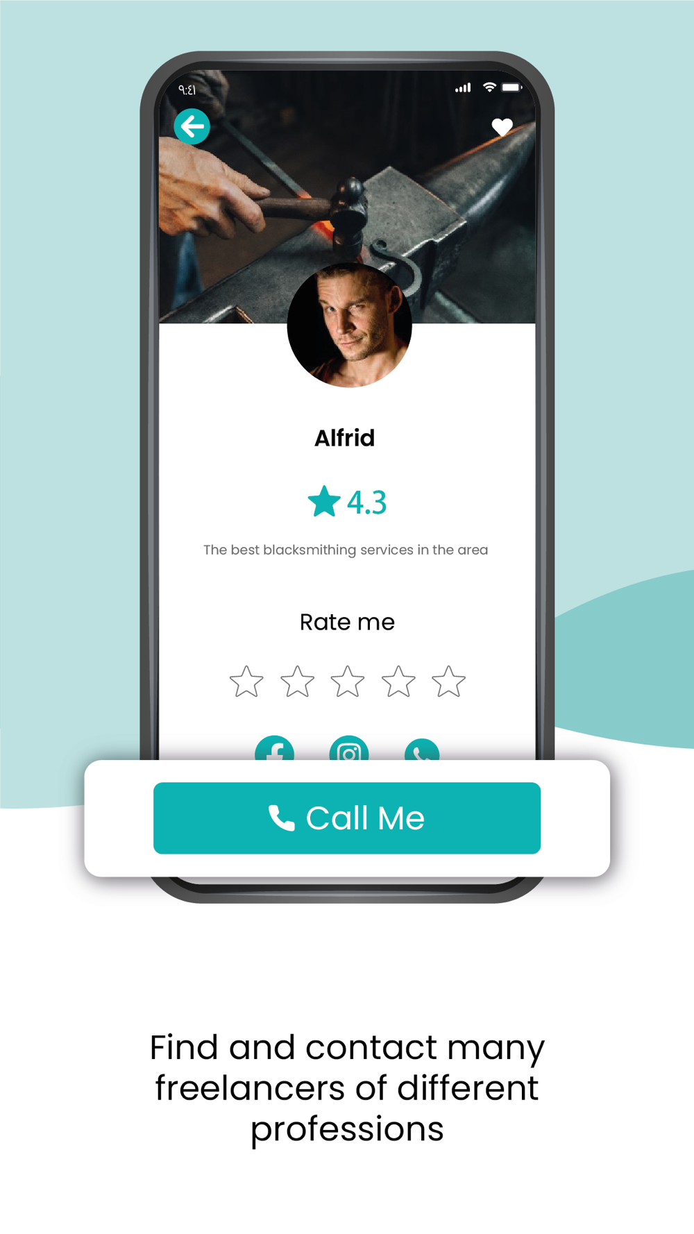 This application helps users to call freelancers and shops and access their social media profiles, especially for shops users can browse their items and get directions to their locations.