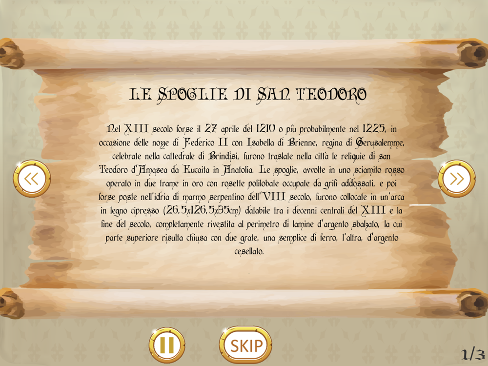 Utilizza lo scanner AR dell'Applicazione per acquisire marker di realtà aumentata e visualizza le informazioni dell'Arca di San Teodoro presente nella chiesa di San Paolo a Brindisi.