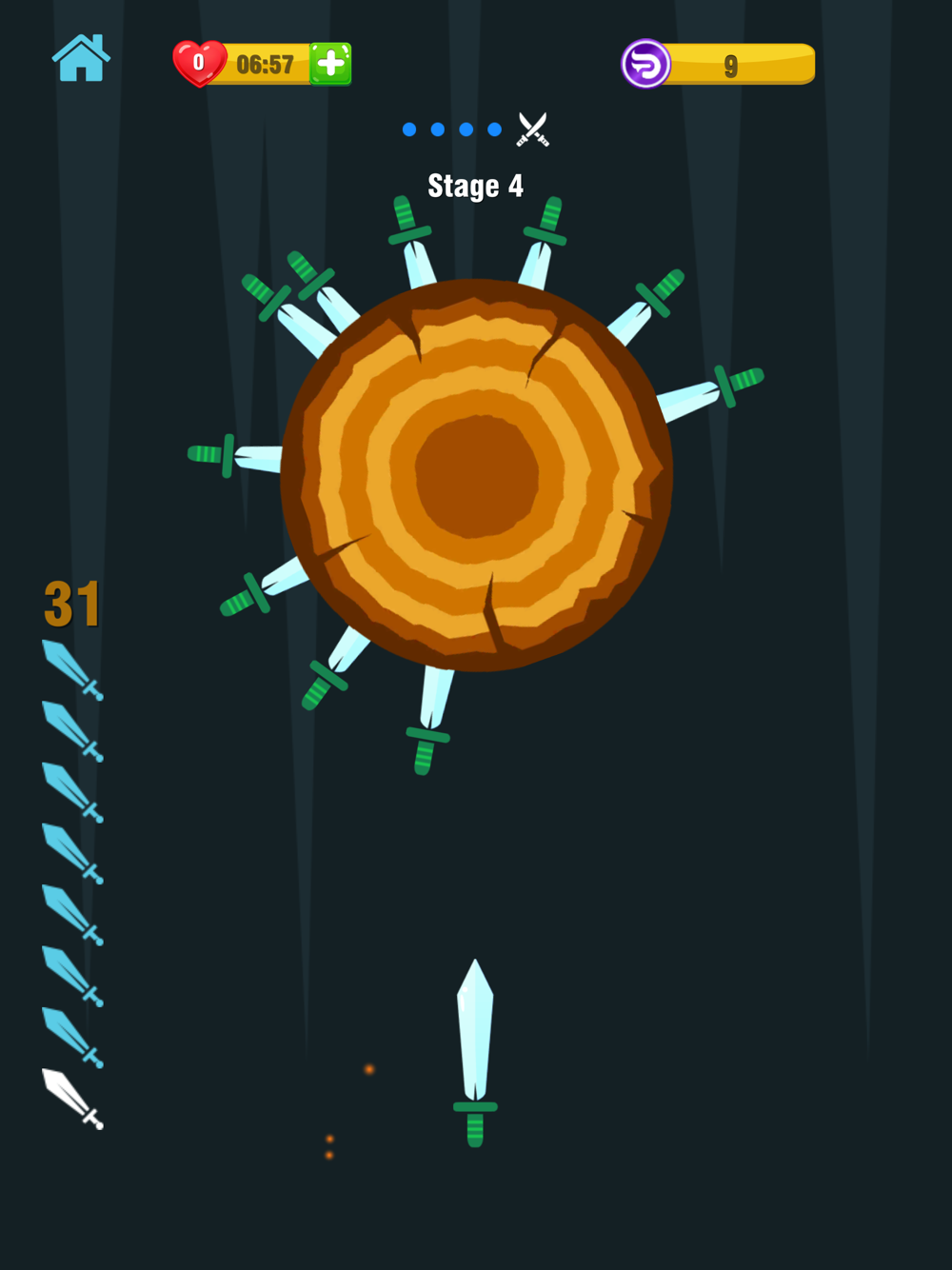 Throw the knives into the logs to break them and climb up the leaderboard