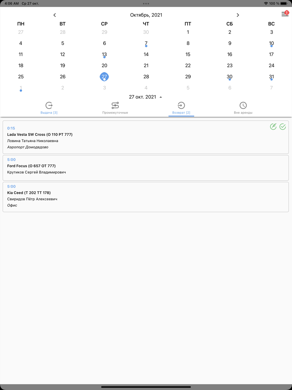 Мобильное приложение предоставляет возможность сотрудникам автопарка (таксопарка) проводить осмотр авто в рамках аренды (при выдаче/возврате и промежуточные) и вне аренды. Приложение предоставляет сотруднику список задач на проведение осмотров. Список осмотров и данные по клиентам и авто заполняются менеджерами автопарка (таксопарка) в десктопной версии.